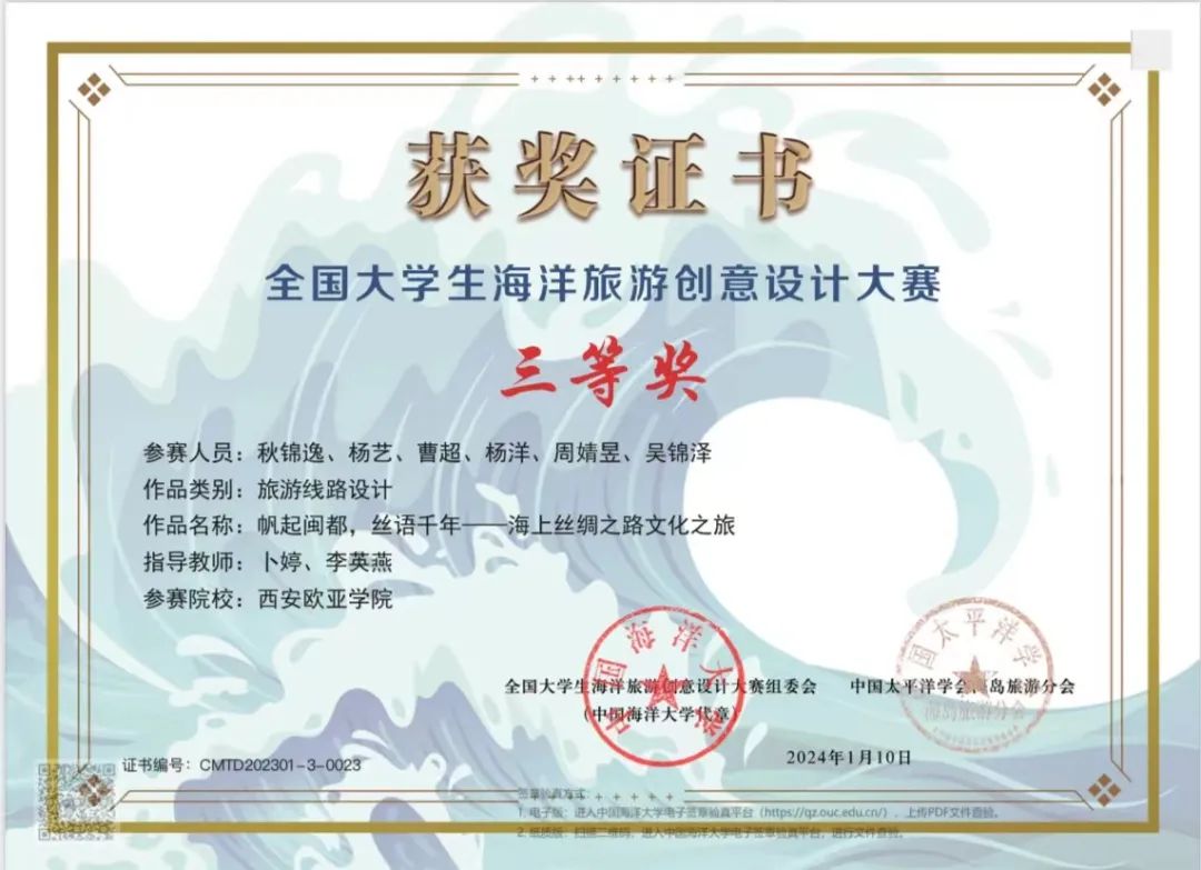 全国大学生海洋旅游创意设计大赛 | 省级三等奖 | 3 |