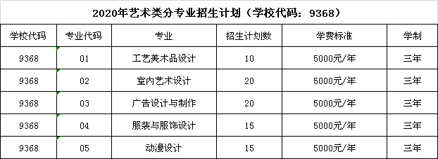 铜陵职业技术学院2020年普通高考艺术类分专业招生计划