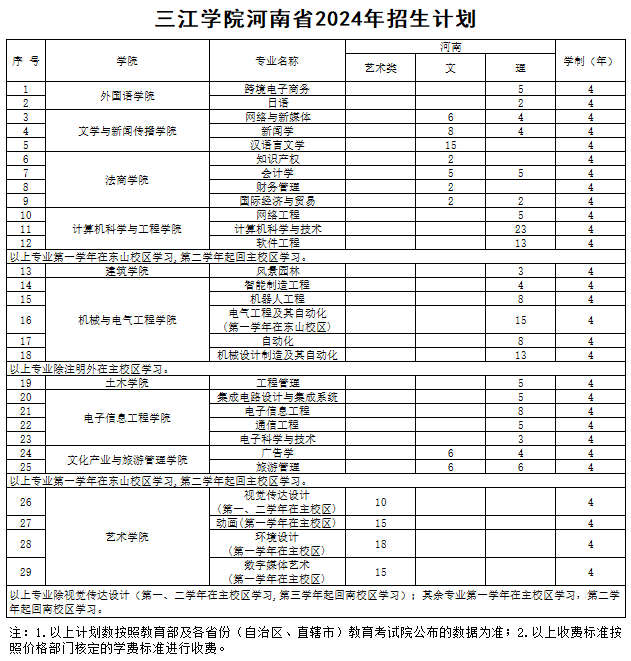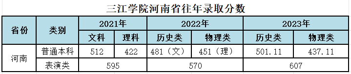 三江学院河南省往年录取分数和2024年招生计划