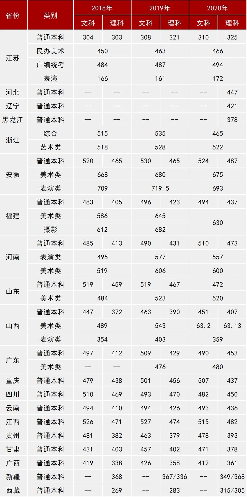 2018-2020年各省录取分数线