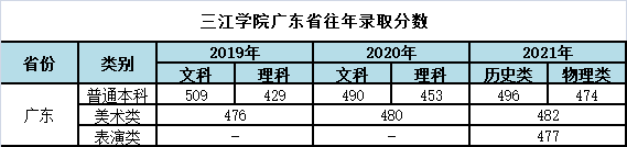 三江学院广东省往年录取分数和2022年招生计划