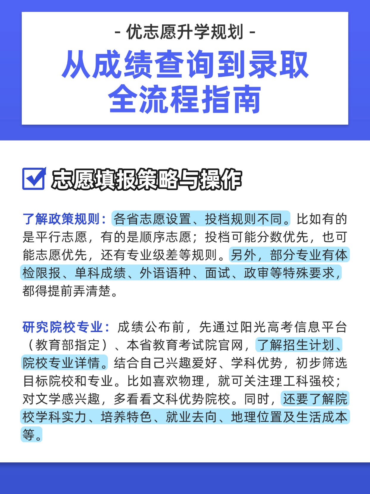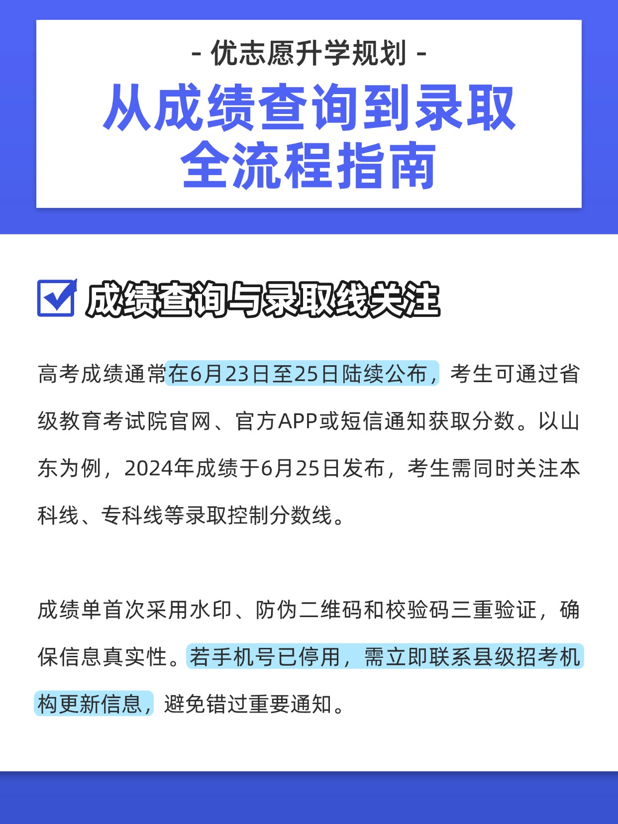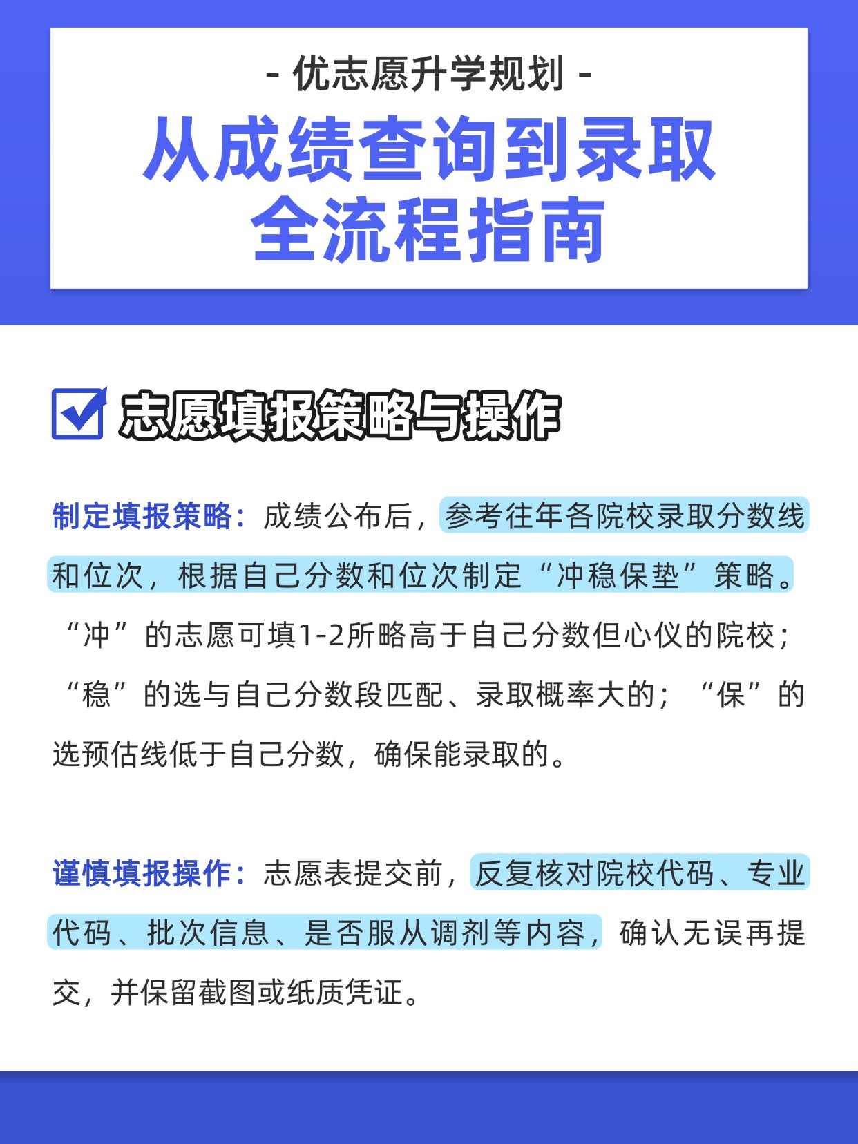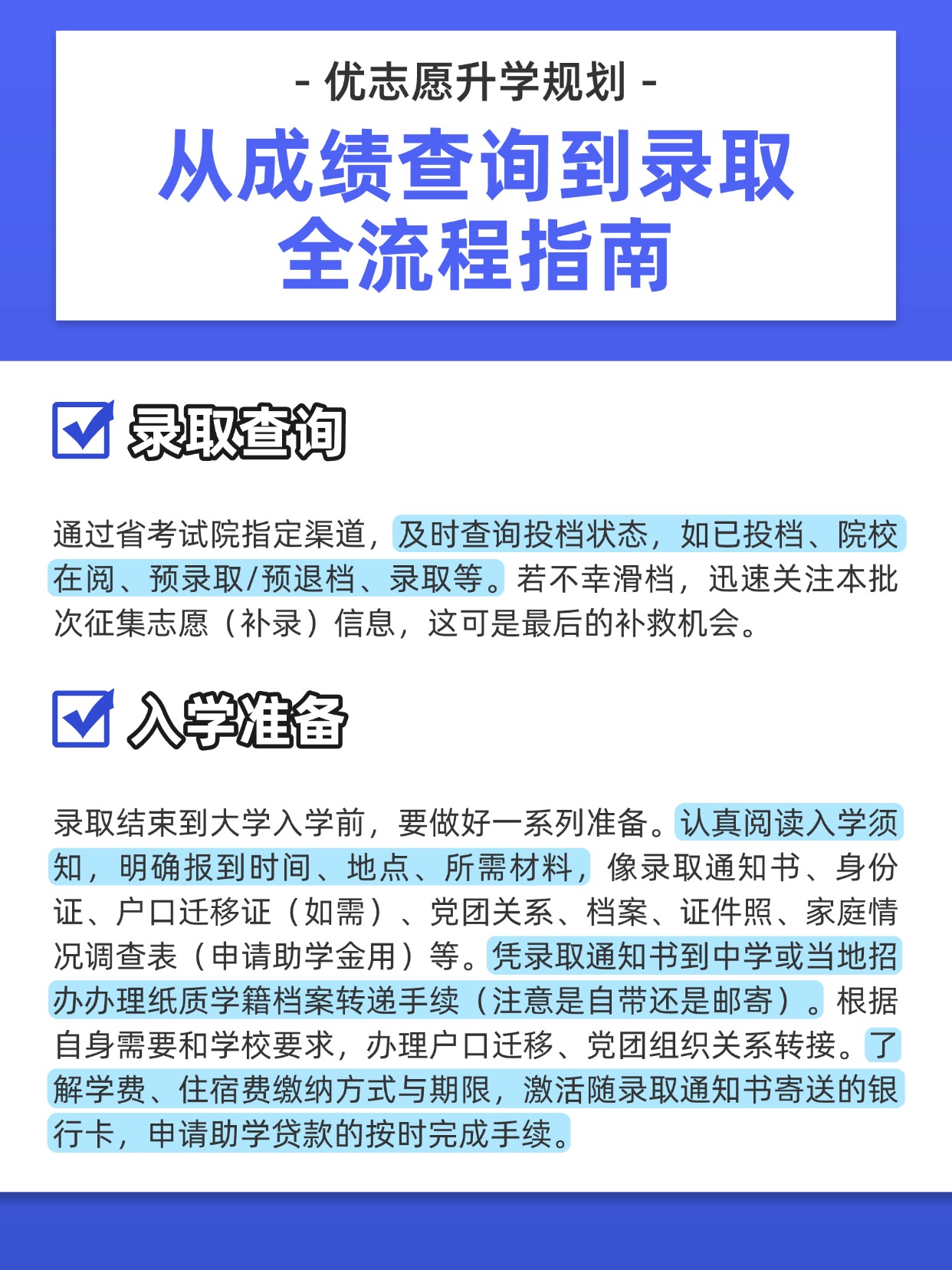 最后一科考试结束的铃声响起,高考这场“青春战役”暂时画上句号。但真正的挑战才刚刚开始——从查分、填志愿到录取入学,每一个环节都关乎未来方向。接下来是优志愿为你梳理高考后的“任务清单”,助你稳扎稳打迈向人生新阶段。
