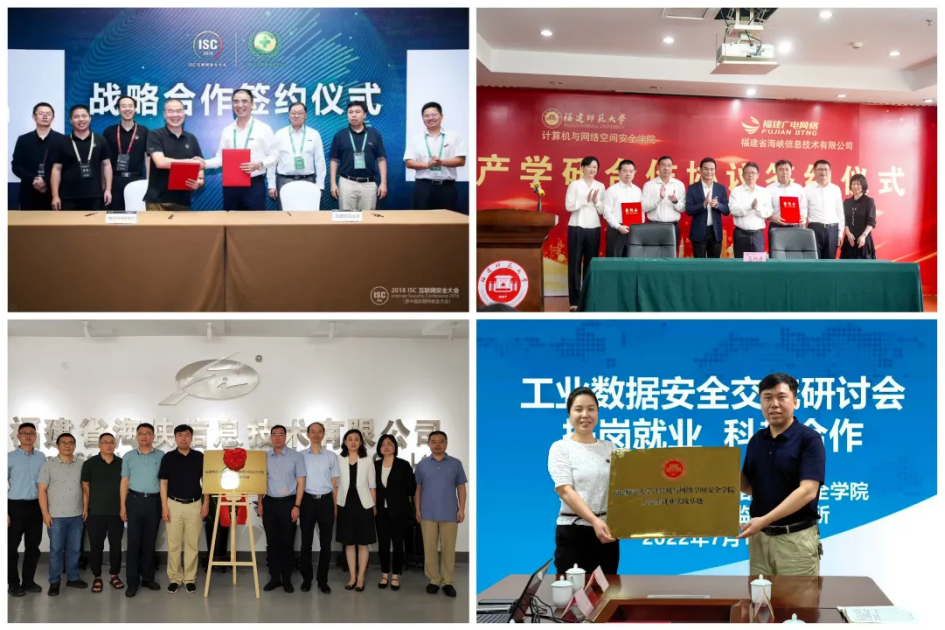 学院是工信部特色化网络安全产教融合创新中心首批建设试点单位,福建省数字经济联盟核心成员单位和福建省数据安全产业发展联盟发起单位之一,先后与华为股份有限公司、360股份有限公司、星网锐捷股份有限公司、联通(福建)产业互联网有限公司、福建省海峡信息技术有限公司等单位签署战略合作协议。学院负责全国青少年信息学奥林匹克竞赛(CCF NOI)福建赛区相关活动。许力教授被聘为福建省教育厅教育信息化专家委员会主任和福建省工业数据安全产业发展专家组组长,学院研究人员在省内多家IT企业成立专家工作站。福建省网络安全与密码技术重点实验室连续4年入围福州市委网信办网络安全技术服务支撑单位。学院积极参与第六届数字中国峰会,牵头成立福建省网络空间安全学会并担任理事长单位,入选全国数字安全产教融合共同体轮值理事长单位、全国网络安全产教融合共同体副理事长单位、福建省数据安全产业联盟秘书长单位和中国网络空间新兴技术安全创新联盟常务理事单位,与三明市委网信办等签署了网安人才联合培养协议,推动产学研用深度融合。