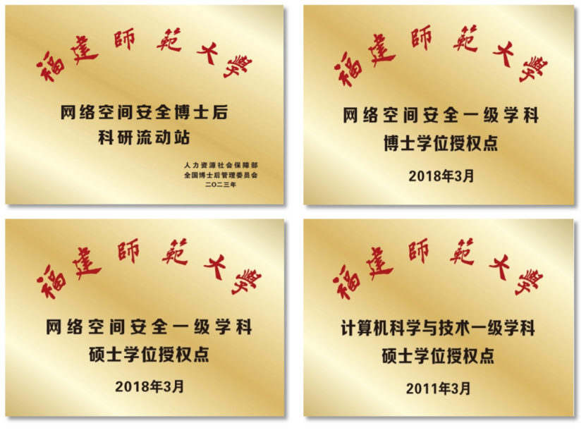 学院拥有1个一级学科博士学位授权点(网络空间安全)、1个网络空间安全博士后科研流动站,2个一级学科硕士学位授权点(网络空间安全、计算机科学与技术),1个硕士专业学位授权点(电子信息,含有软件工程、人工智能、网络与信息安全3个硕士专业学位授权领域);拥有1个福建省高原学科群(大数据挖掘及应用)。近年来,在软科中国最好学科排名中,网络空间安全学科排名20名左右,是福建省唯一上榜的高校,在榜单中位居全国师范类院校首位。计算机学科上榜泰晤士世界学科排名、USNews世界学科排名、软科世界一流学科排名,进入ESI全球排名前1%。