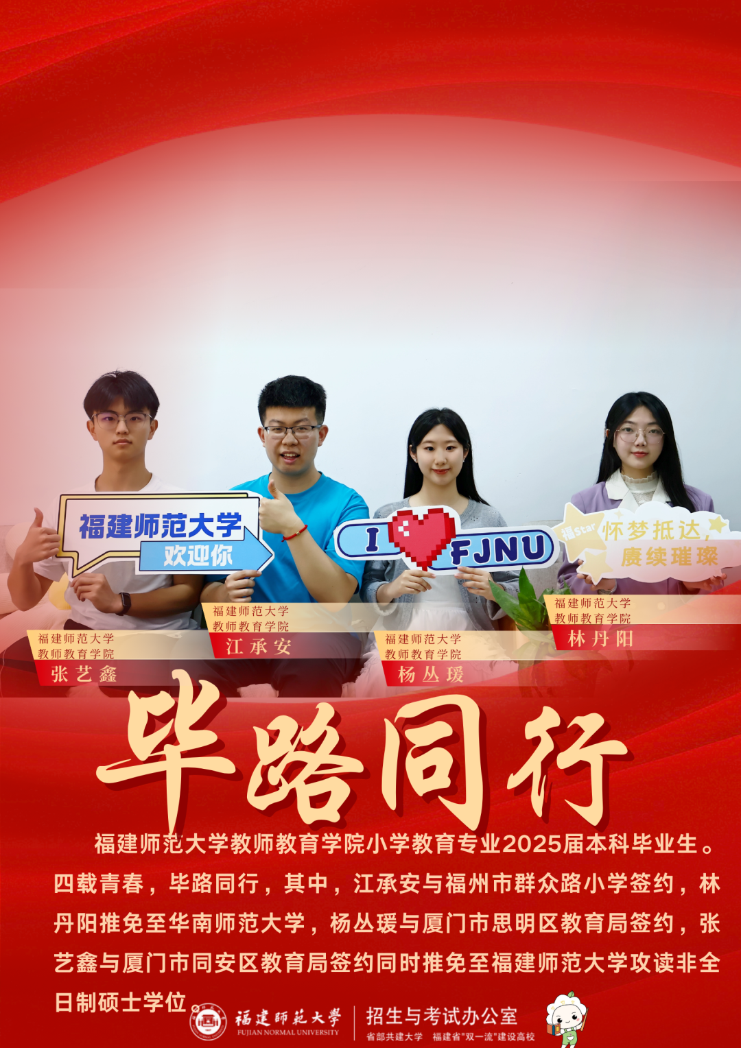 最是钟楼侧边柳,千枝蘸绿写新篇。福建师范大学招生与考试办公室继2024年推出《离歌声声》系列毕业生采访后,联动学生工作部再次推出《毕路同行》专栏,聚焦2025届本科毕业生从入学、成长、毕业、就业的青春叙事,让我们一起聆听青春破茧的声音,见证师大沃土孕育的繁花如何绽放于更广阔的天地吧!