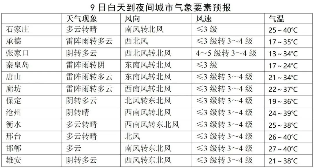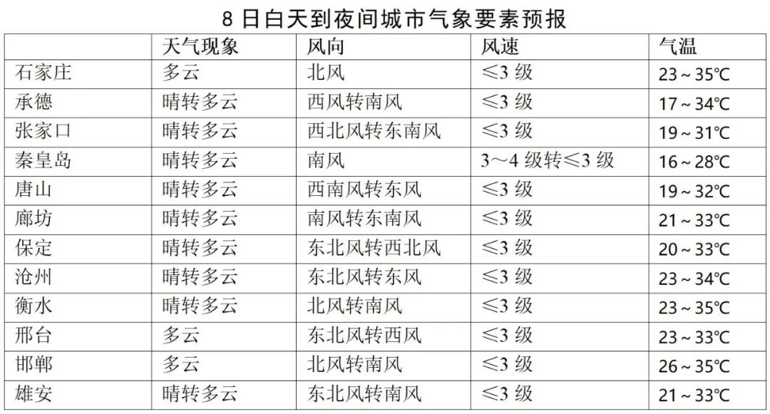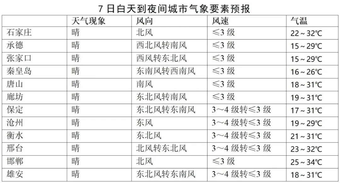 未来三天全省主要城市气象要素预报