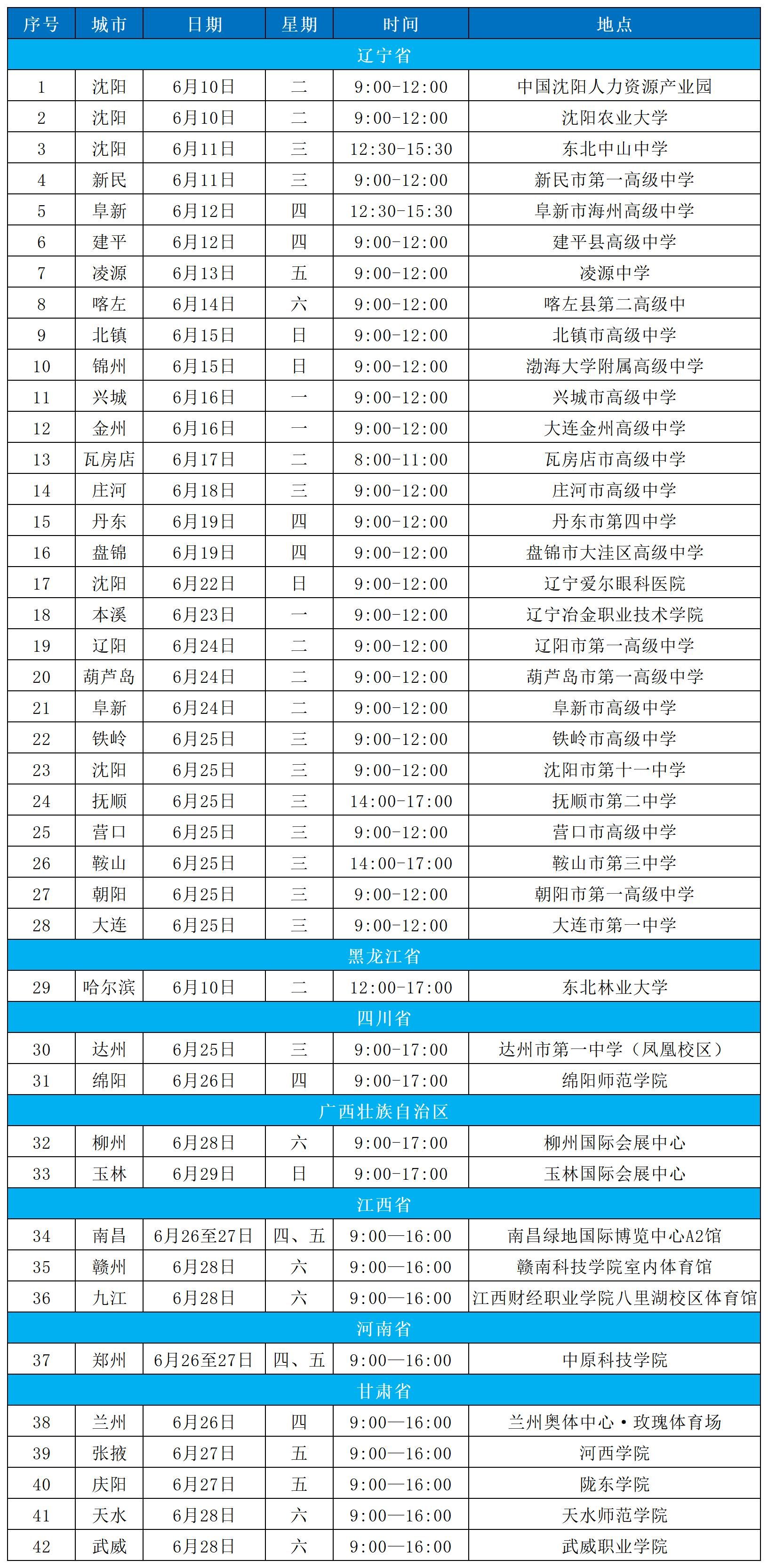 为增进我校与广大考生的沟通和联系,帮助考生及家长更加直接详细了解我校2025年相关招生政策,专业特点和办学成效,我校将走进省内外多个城市,开展线下招生咨询活动,欢迎广大考生及家长前来参加咨询。现将活动行程预告如下: