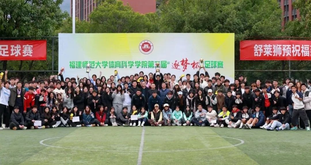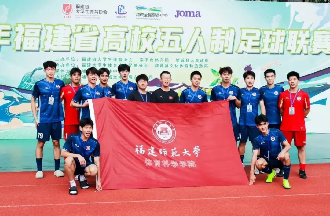 足球运动专业姜子昊(右一)代表福建师范大学获福建省高校五人制足球联赛冠军