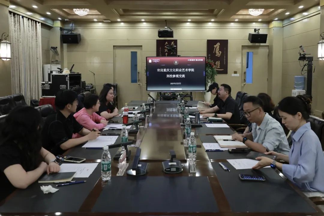 5月27日上午,重庆文化艺术职业学院一行与四川电影电视学院播音主持学院的领导、老师举行了一场以"新时代播音主持人才培养"为主题的座谈会,旨在加强两校在专业建设、人才培养等方面的交流合作,共同探索艺术教育发展新路径。