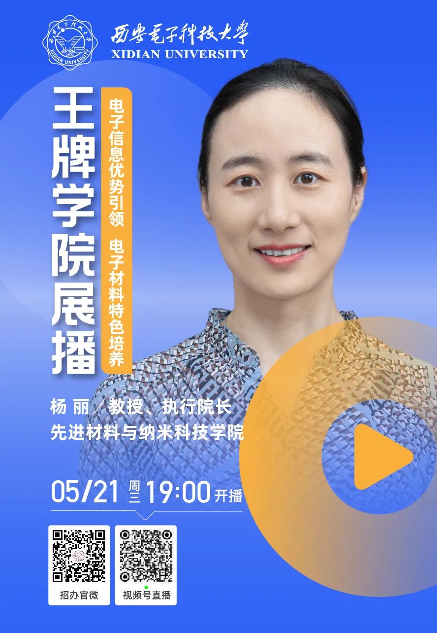 2025“王牌学院展播”活动第七期将于5.21(星期三)开讲!本期邀请到先进材料与纳米科技学院执行院长杨丽教授,带我们解读先进材料与纳米科技的奥秘,欢迎各位家长及考生关注~