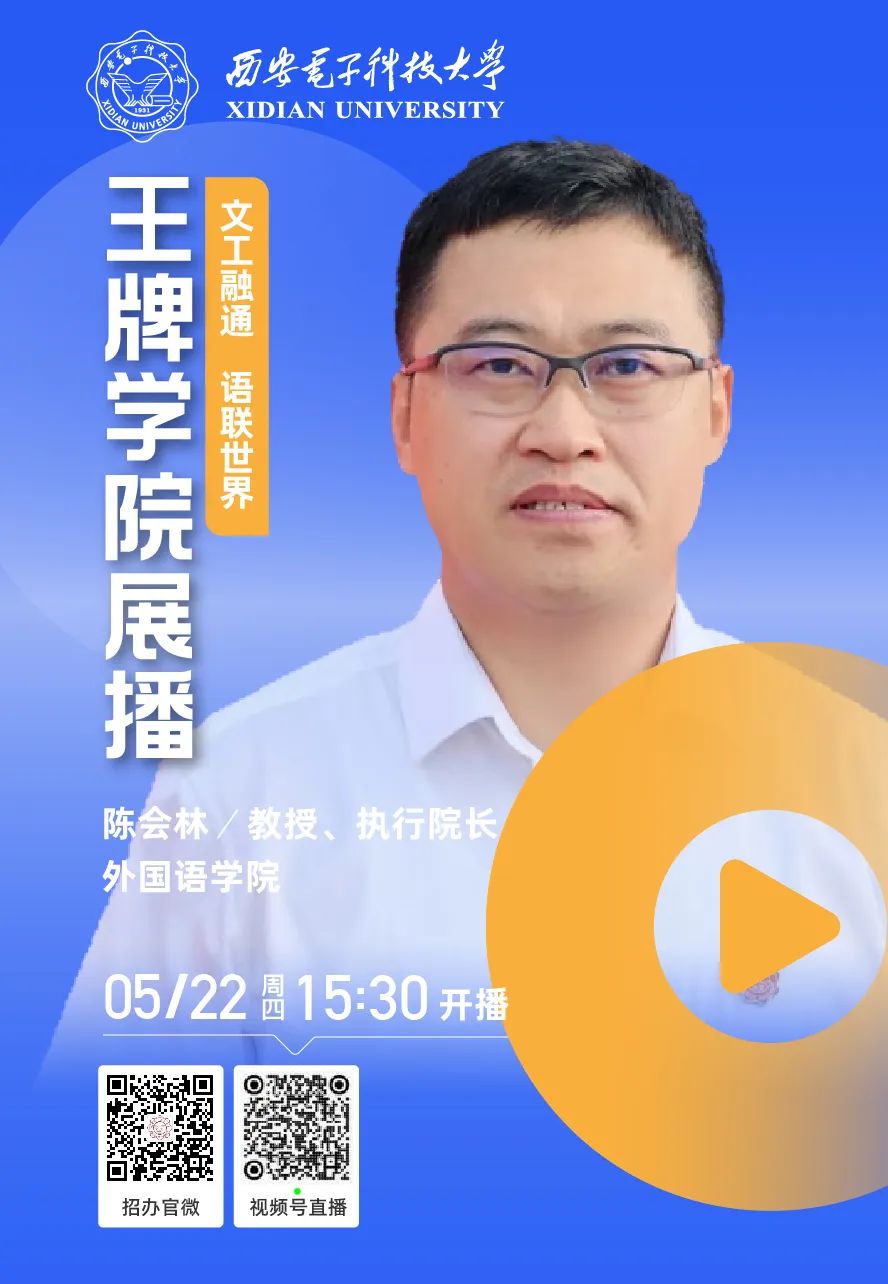 2025“王牌学院展播”活动第八期将于5.22(星期四)开讲!本期邀请到外国语学院执行院长陈会林教授,带我们解读外国语言的奥秘,欢迎各位家长及考生关注~