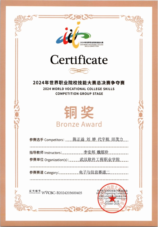 世界职业院校技能大赛 电子与信息赛道二区块链技术应用铜奖