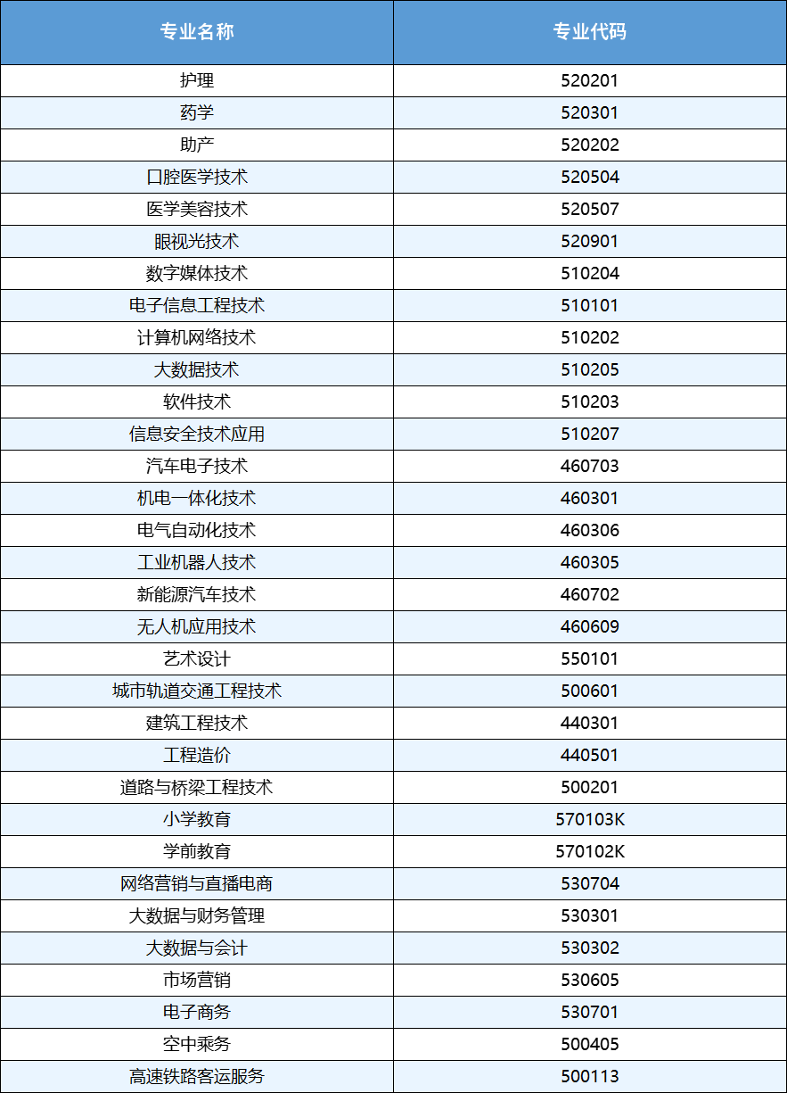 我校按照教育部及各省(区、市)招生主管部门的文件精神实施招生计划和招生专业的管理。2025年面向全国6个省(区、市)招生,详细计划以各省(区、市)招生主管部门公布的招生计划为准。所有专业均不限招生科类,即物理类、历史类、职高对口类考生均可报考。