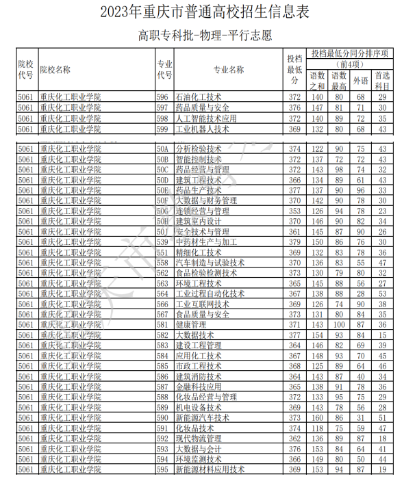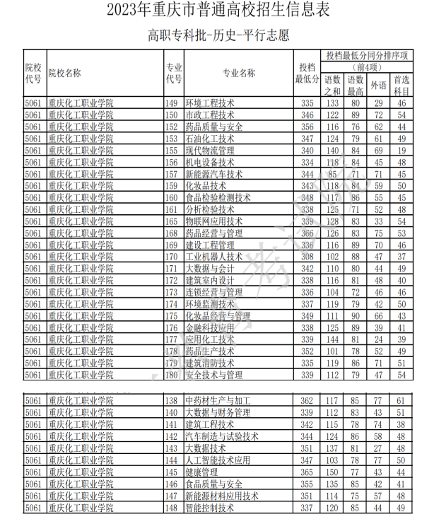 2023年 重庆秋季高考专业录取分数线参考.docx