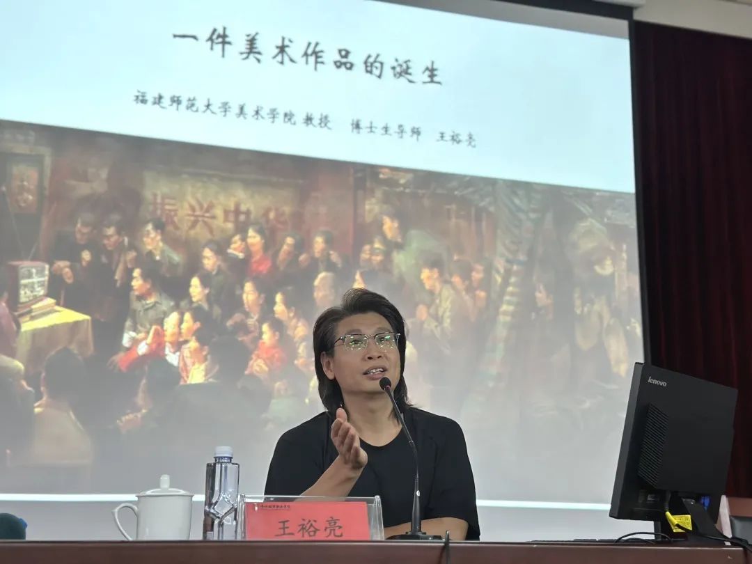 王裕亮详细解读了一件大型主题美术作品从搜集素材、构思、草图、模特拍摄、制作画框画布画底到最终完成的整个过程。他结合自身创作经历,通过丰富的艺术案例,分享前沿理念、创作灵感来源、创作过程中遇到的困难及解决方法,提升师生的艺术鉴赏力以及艺术创作思维。
