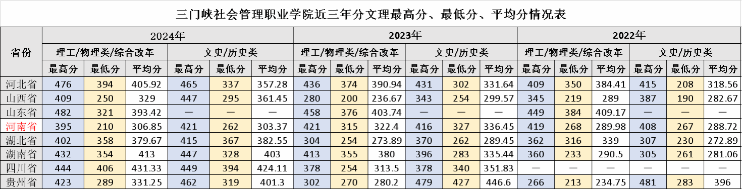 三门峡社会管理职业学院近三年录取分数情况