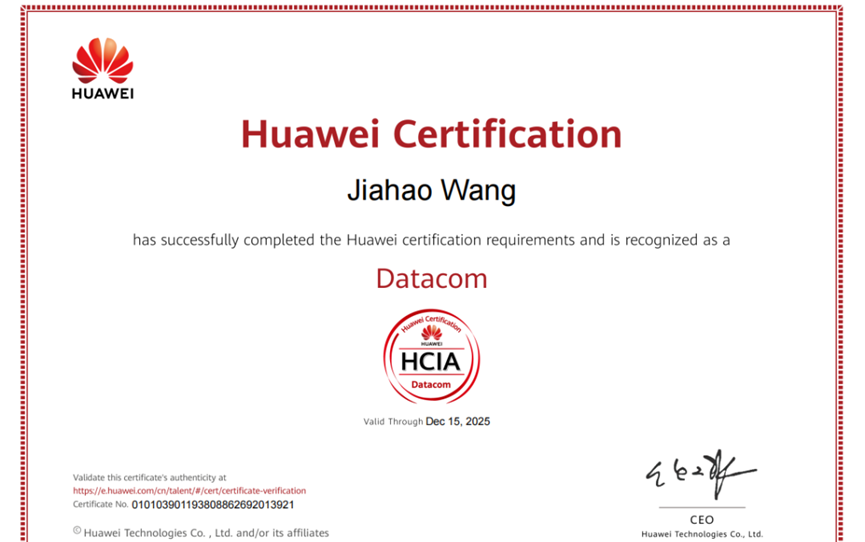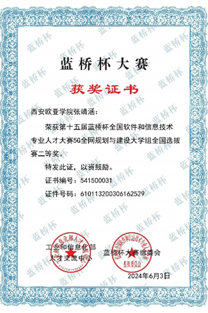 ■ 2023年获得华为ICT大赛“陕西省实践赛·网络赛道本科组”三等奖