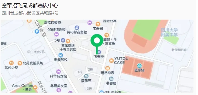 ②空军招飞局成都选拔中心(四川省成都市武侯区共和路4号)。