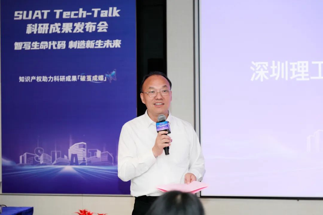 科研成果发布会4月25日,深圳理工大学在光明天安云谷举办了第二期SUAT Tech-Talk科研成果发布会。本期发布会聚焦生命健康和生物制造领域,吸引了企业家、投资人、行业专家、政府主管部门负责人、深圳理工大学教授代表与部分首届本科生等约80人参与,共同探讨该领域的科研成果转化与产业发展新机遇,并以知识产权助力科研成果“破茧成蝶”。