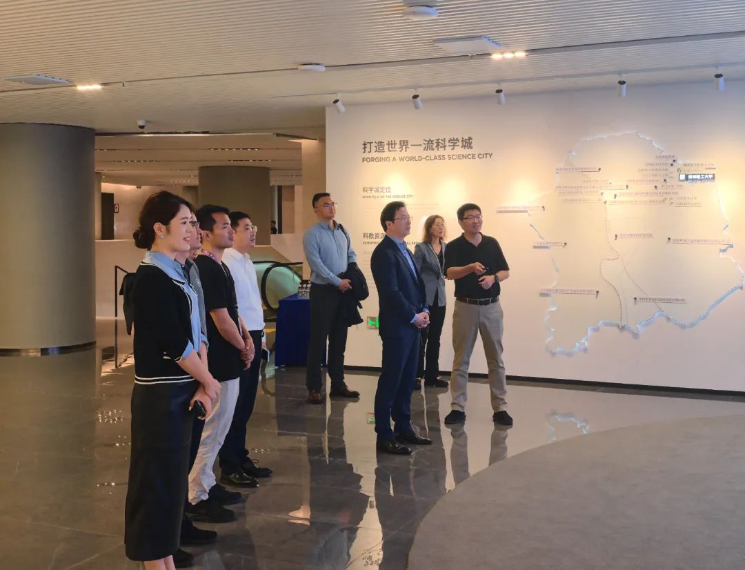会前,德国莱茵TÜV代表团实地参观了深圳理工大学展厅与科研设施,全面了解了学校在新能源材料领域的创新布局。