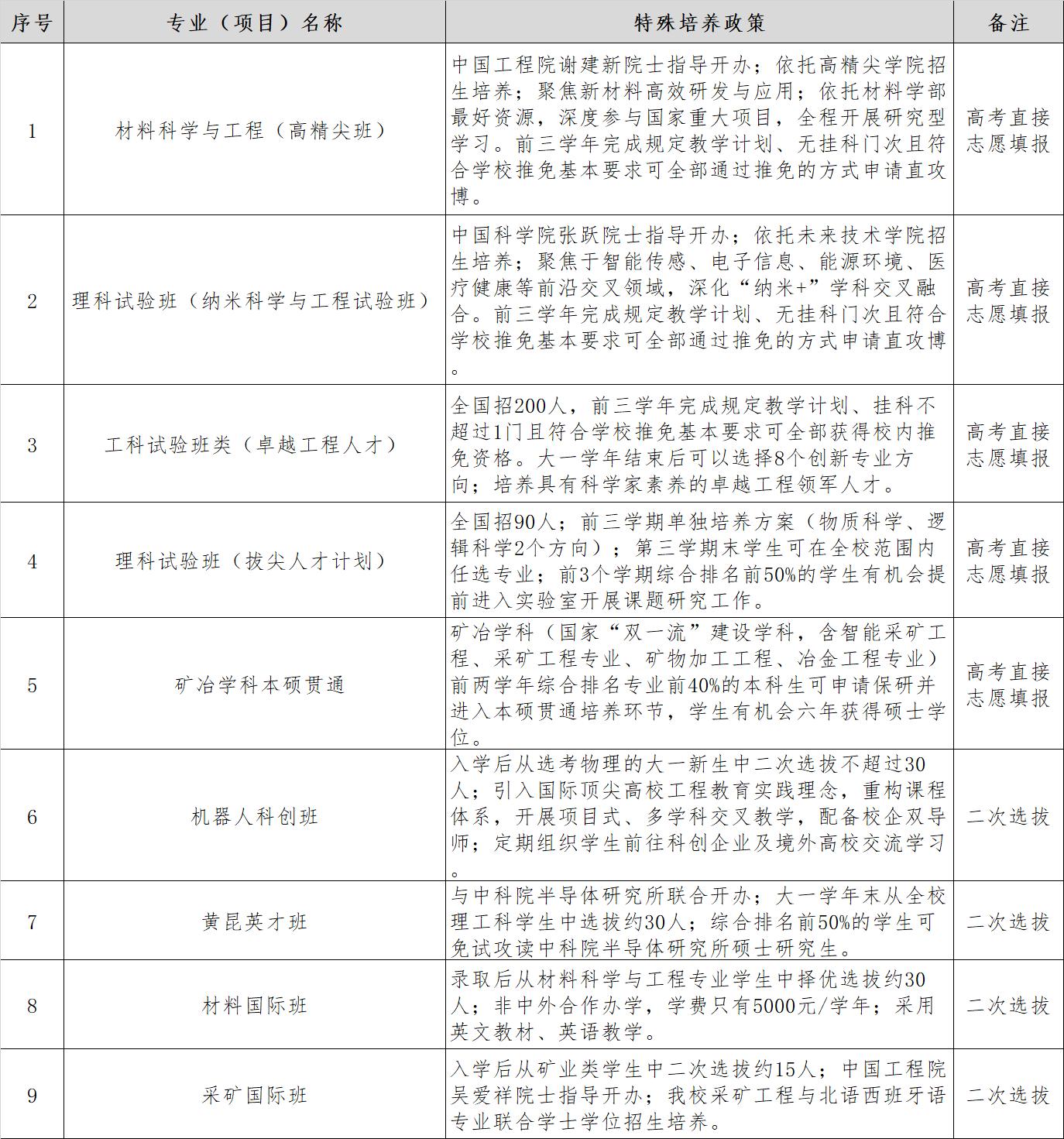 2025年部分精英人才培养专业(项目)特殊培养政策介绍