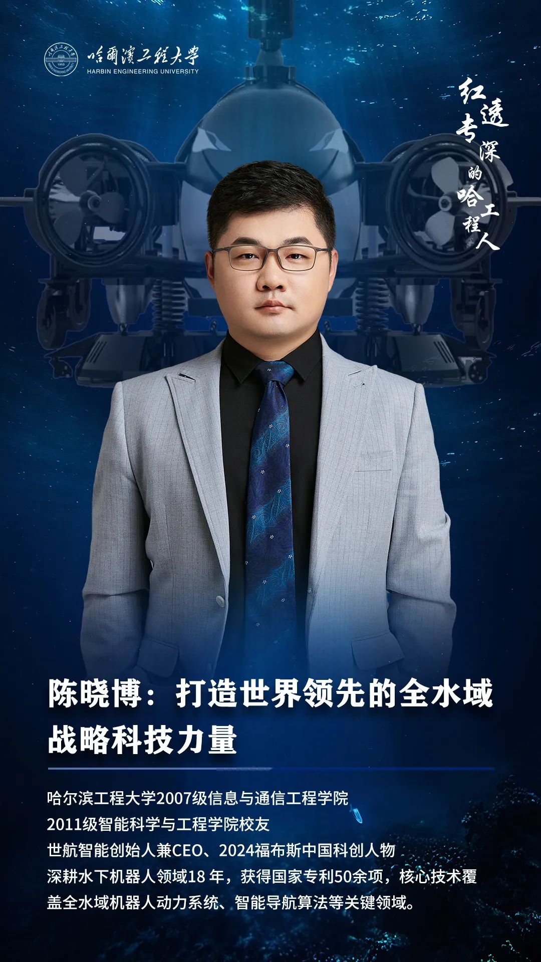 陈晓博创立的世航智能,专注于海洋机器人及智能无人装备自主研发、生产、销售、服务。其研发的海洋通用机器人致力于打造水下0至1万米超级生产力,已在国内多个港口完成部署,可应用于无人船舶、运输、清洗、资源勘测、基建维护等多个场景,将大力推动海洋经济进程,为实现海洋强国贡献力量。