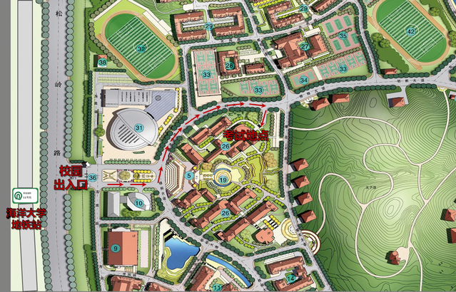 图:崂山校区考试路线示意图
