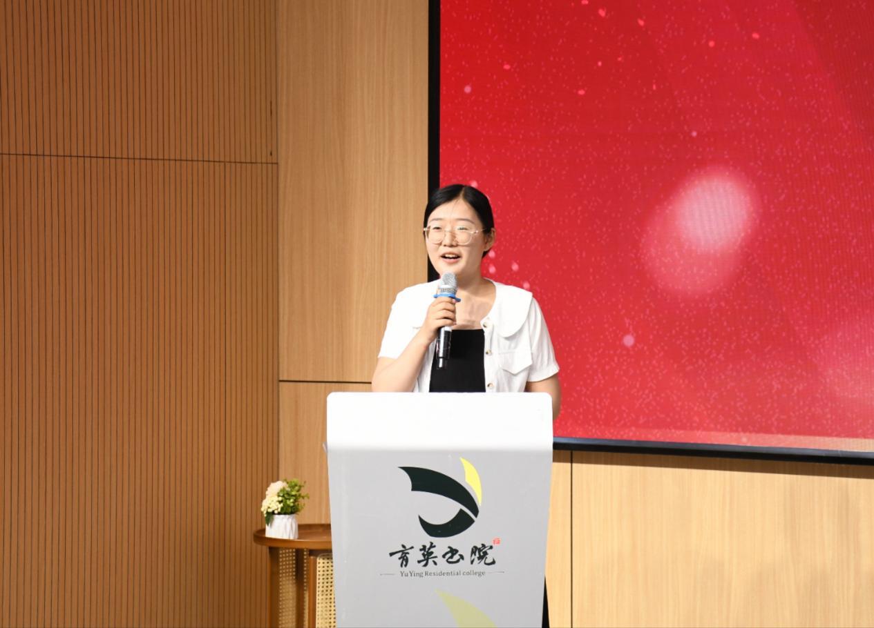 职场先锋班学员代表王景琪发言。目前入职内蒙古自治区黄河三盛公水利枢纽管理中心(内蒙古自治区西部水事服务中心)。他首先表达了对学校、老师们的感激之情。在职场先锋班里,不仅学到了实用的职场技能和知识,还结识了一群志同道合的朋友,共同成长。他表示,职场先锋班的学习经历让他在职场上更加自信,更加从容。他将以此次结业为契机,继续努力,不断提升自己的职业素养和综合能力,为母校争光,为社会贡献自己的力量。