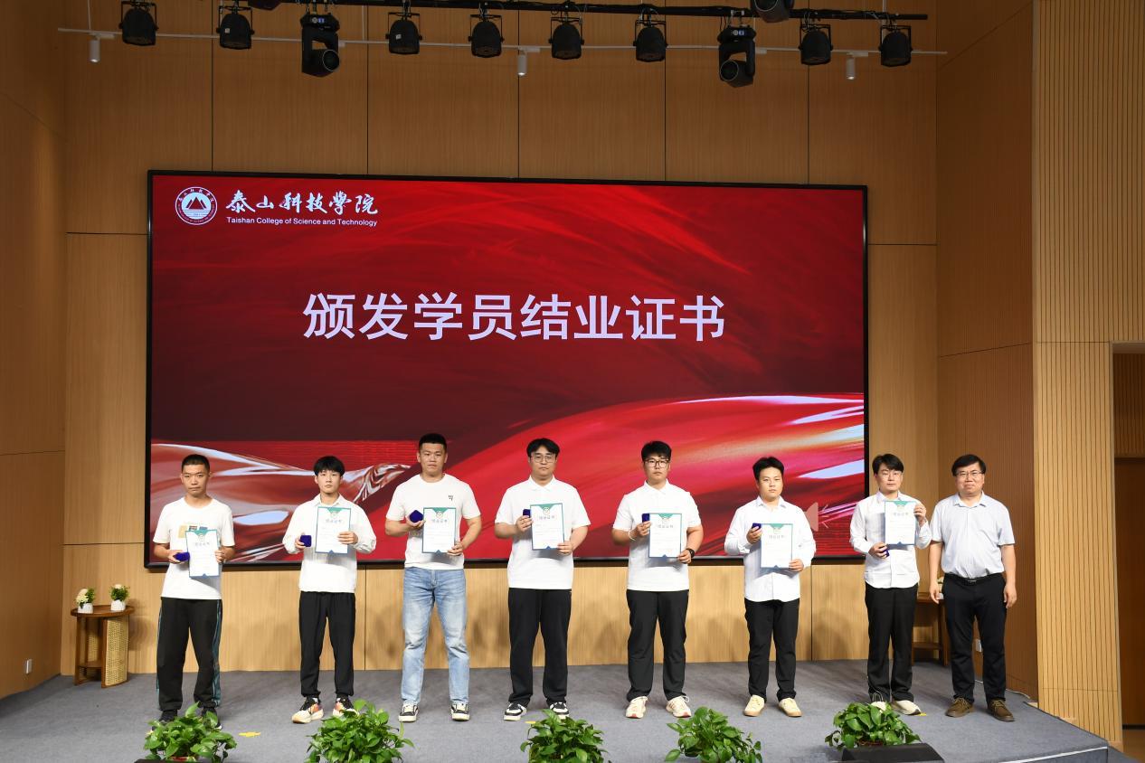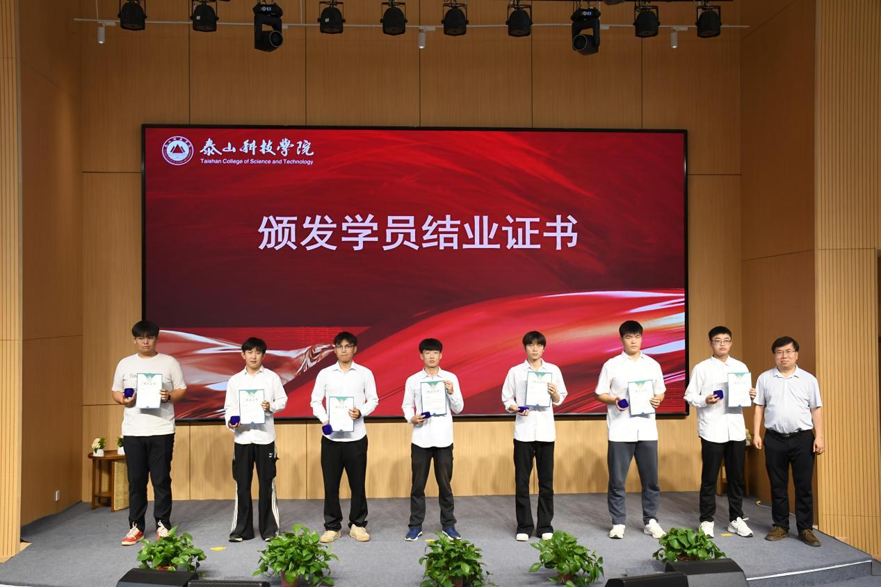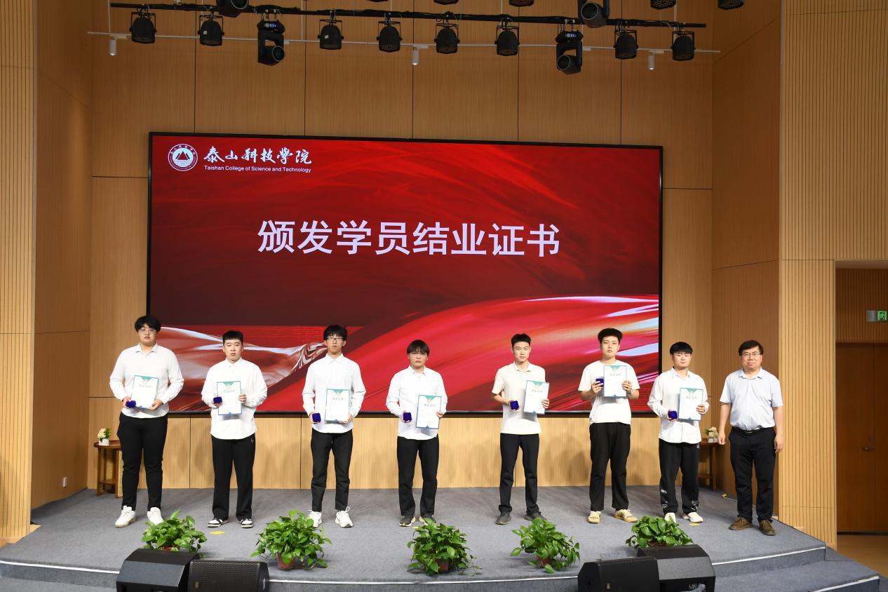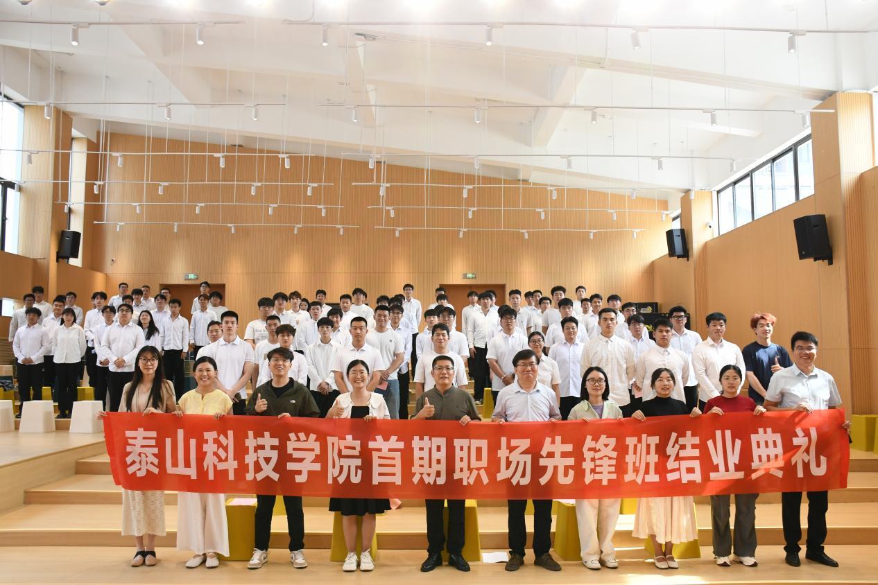 6月10日,泰山科技学院首期职场先锋班结业典礼于育英书院隆重举行。校长助理丁海奎、就业创业指导与服务中心科长刘文斌、智能工程学院就业创业办公室主任赵金晓、职场先锋班导师仲伟进、智能工程学院毕业班辅导员、就创中心教师及所有学员,共同见证这一重要时刻。