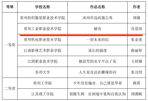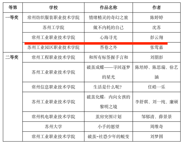 6月11日,从学工处传来喜讯,在苏南地区大学生心理健康教育研究中心近期主办的系列活动中,我校学生作品荣获一等奖2项、二等奖3项、三等奖1项,6位教师荣获“优秀指导老师”称号,我校在2个项目中荣获“优秀组织奖”。