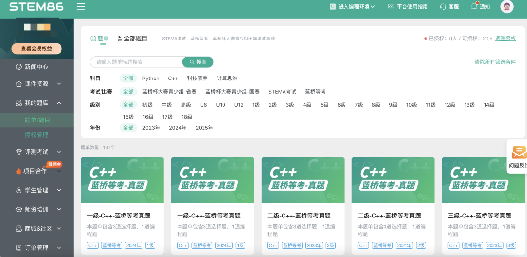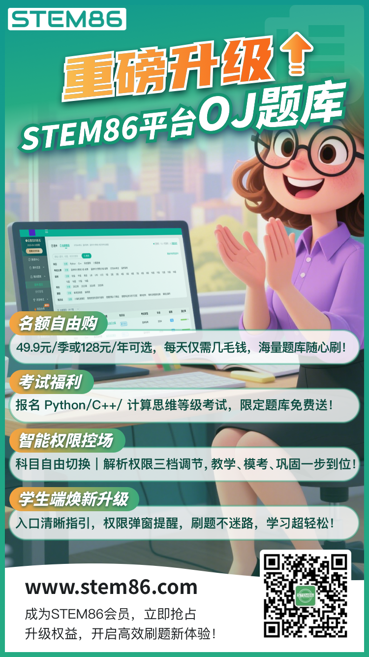 教师教学的黄金训练场——STEM86平台OJ题库迎来再次升级,不仅覆盖全学科编程训练场景,更推出福利组合,助力广大教师实现高效且专业的教学!