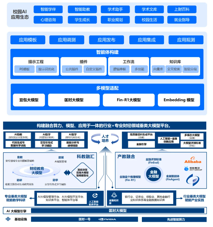 匡时财经教育大模型的应用生态建设坚持科教融汇与产教融合双轮驱动。