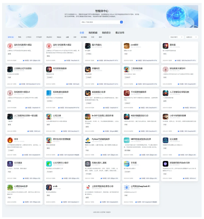 科教融汇上,依托低代码智能体开发平台及智能体应用市场,学校部署了覆盖“助教、助学、助研、助管”四大场景的智能应用,实现了课程设计、学情追踪、数据管理、质量监测等业务流程的智能化升级。同时,整合校内外资源打造统一AI教学门户,集成知识图谱导航、智能问答、学情诊断等功能,构建起“教-学-评”一体化闭环。