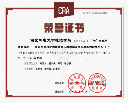 1 | “学”享晚年,赋能银龄——老龄化进程中江苏老年人学习参与状况与影响因素分析 | 刘洁云、杨梦蝶、马可、张宇豪 | 王善高、谢智敏、邱士雷 | 国三 |