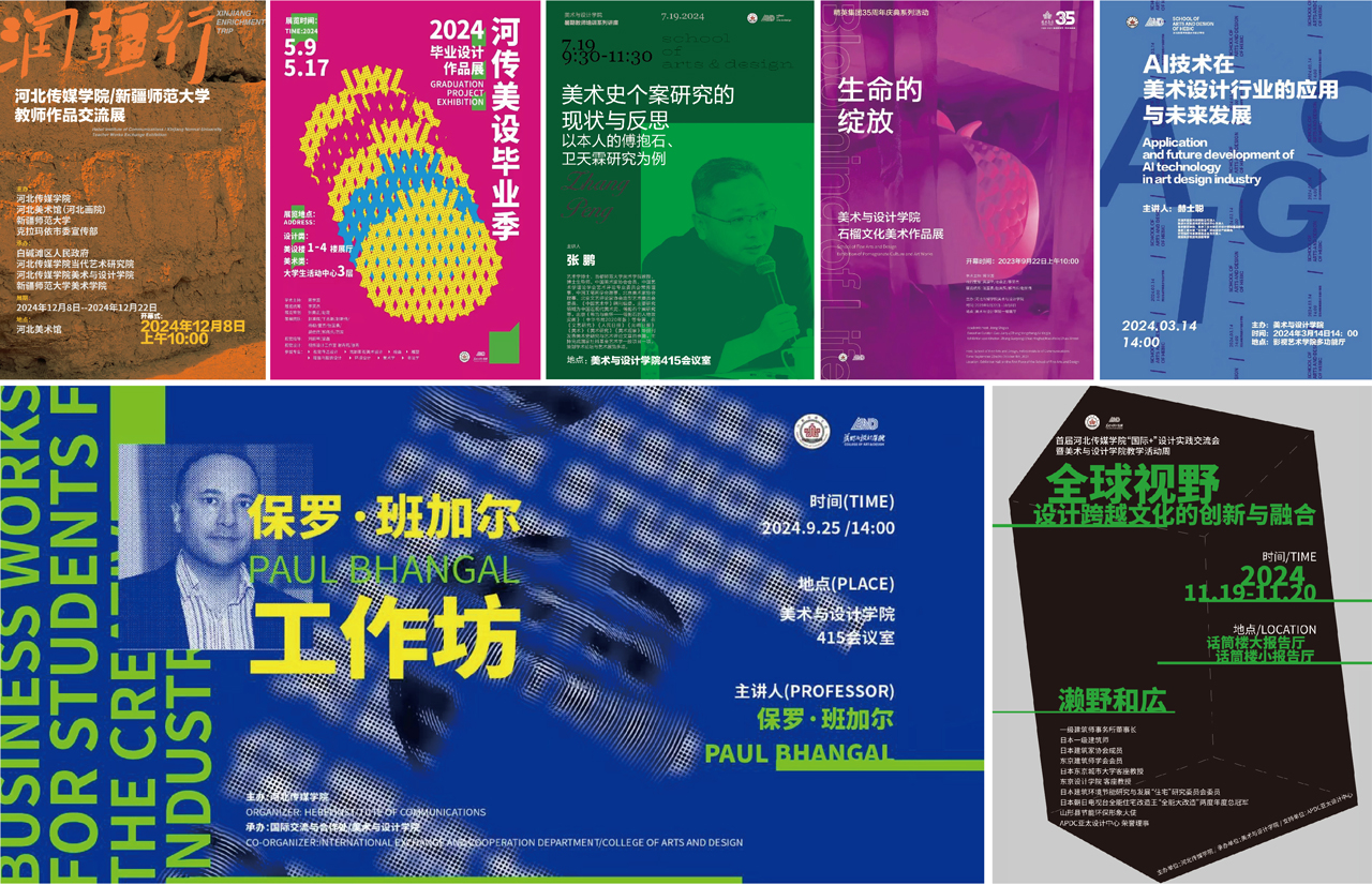 设有影视场景设计、演艺空间设计、影视服化设计三个方向。影视场景设计方向系统学习影视剧,尤其是古装戏场景与道具设计等理论知识和创作技能;演艺空间设计方向系统掌握演播厅、戏剧舞台、综艺舞台以及商业展演空间等设计的理论知识和创作特点;影视服化设计方向系统掌握舞台演出、影视演员服装与化妆设计等理论知识和创作特点。 主要核心课程:戏剧影视化妆设计、特效化妆、古建筑技艺、AI影视合成特效、演艺空间AI设计实训、影视场景UI可视化设计、舞台与新媒体交互技术、影视场景数字表现、虚拟演播设计、动态媒体与交互设计等。 02 / 视觉传达设计 省级一流本科专业 视觉传达设计专业是学校首批开设的本科专业之一,2016年确定为河北省转型改革试点专业,2020年获批为省级一流本科专业建设点,2024年获批省级一流本科专业。 专业充分利用学校传媒学科优势,培养掌握前沿视觉设计理念、先进设计手段和商业设计流程,具有对视觉元素较强的应用意识和实践能力,具有国际设计文化视野与中国设计思维方式,能够在品牌形象、信息设计、媒体视觉传播设计等领域从事设计工作,在设计机构和企事业单位从事视觉传达设计、教育、研究和管理的复合性应用型人才。 目前,本专业已成功对接河北博物院、邯郸博物馆、响堂山石窟品牌文创、正定隆兴寺文化创意衍生品设计等多项设计实体项目,通过结合地方经济服务赋能实践教学,在省内形成了广泛的社会效应和影响力,成功申报专利数百项,为河北经济的发展提供有力支持,也为学生提供了更多的就业资源和机会。 主要核心课程:信息可视化设计、界面视觉设计、品牌形象设计、包装设计、人工智能与插画设计、动态视觉设计、IP形象设计、文化创意衍生品设计等。 03 / 服装与服饰设计 培养具有服装设计创新思维,具备时尚潮流分析和流行预测能力,掌握服装与服饰设计及品牌规划的方法,具备服装设计创造和技术实践能力,能在服装艺术设计领域及艺术设计机构从事服装设计及产品开发、教学、时尚策划与管理、整体形象设计、时尚编辑、服装市场营销等工作的复合性应用型人才。 专业具有完善的教学和实践平台,与众多省市级服装产业基地、知名服装企业、时尚设计工作室建立长期稳定的实践合作关系。学生通过参与实际设计项目,将创新思维和设计方法应用于实践,与企业的设计师们共同完成系列服装设计,了解从设计初稿到最终产品的完整流程,通过实训强化对服装设计与展示的操作能力。 主要核心课程:服装AI创新设计、服装结构设计、服装陈列、立体裁剪、服装面料再造、电脑辅助设计、服装工艺与制作、服装市场营销与品牌企划、综合创新设计等。 04 / 表演(服装设计与表演) 本专业培养具有一定的艺术审美修养,掌握服装设计与表演的基本知识,具备服装表演、策划能力和服装设计及技能实践能力,具备时尚品牌的营销能力和时尚文化的编辑、传播能力,能够从事服装模特、服装编导与活动策划、时尚造型设计、时尚编辑、服装陈列及营销等工作的复合性应用型专业人才。