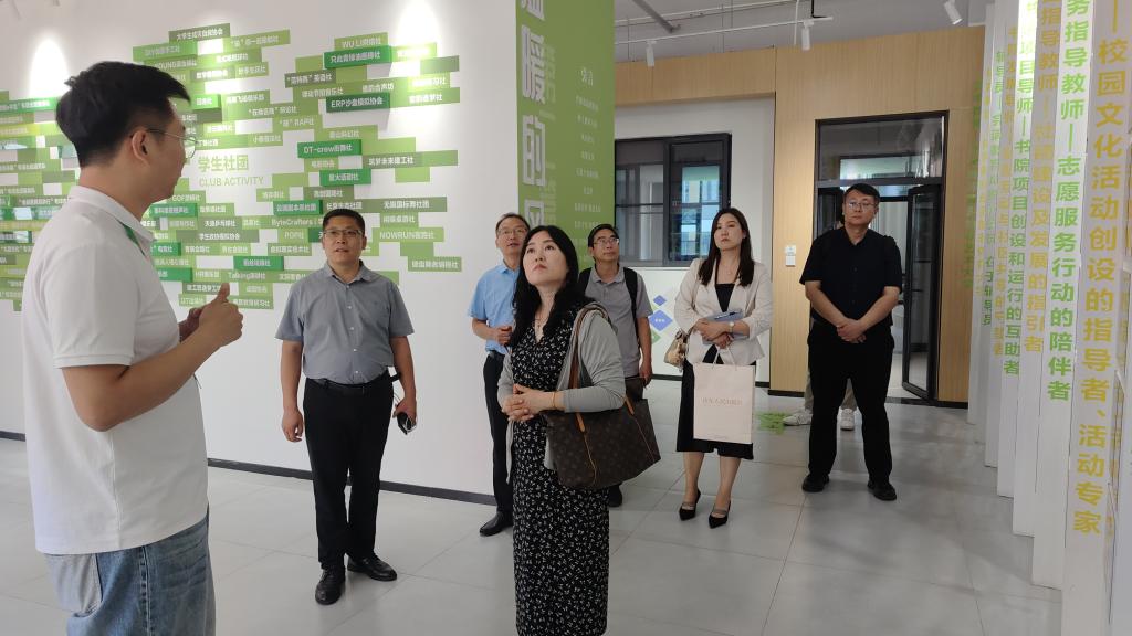 6月12日下午,中教华影副总经理、“大思政课”实践教学发展研究中心常务副主任李永亮,全国高校思想政治工作网副主任王慧敏,全国高校思想政治工作网数字平台建设与运营服务部主任施劲松一行来我校调研高校党建思政工作开展及一站式学生社区建设等工作相关情况。学校党委委员、校长助理丁海奎及相关部门负责人陪同接待。