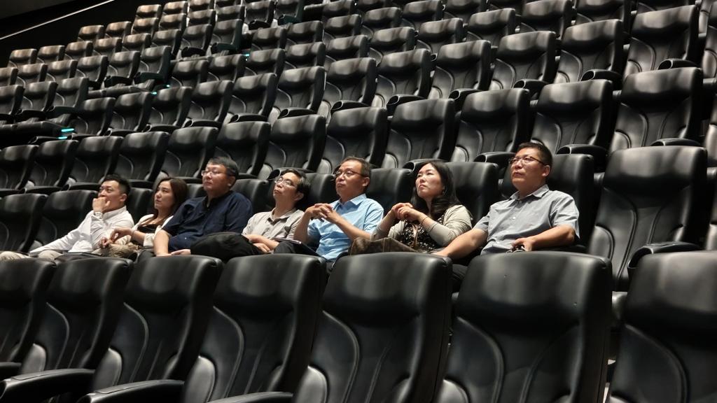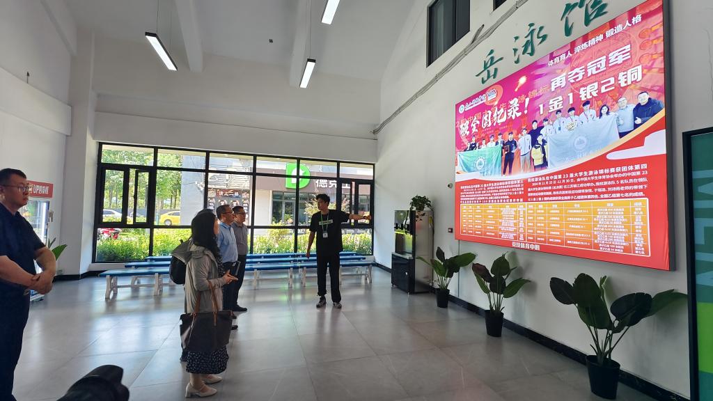 嘉宾先后参观游泳馆、万画影城、环山剧院、敢当书院,观看了原创专题片《风拂育英》、学校宣传片等视频短片,深度了解学生社区一站式服务建设。