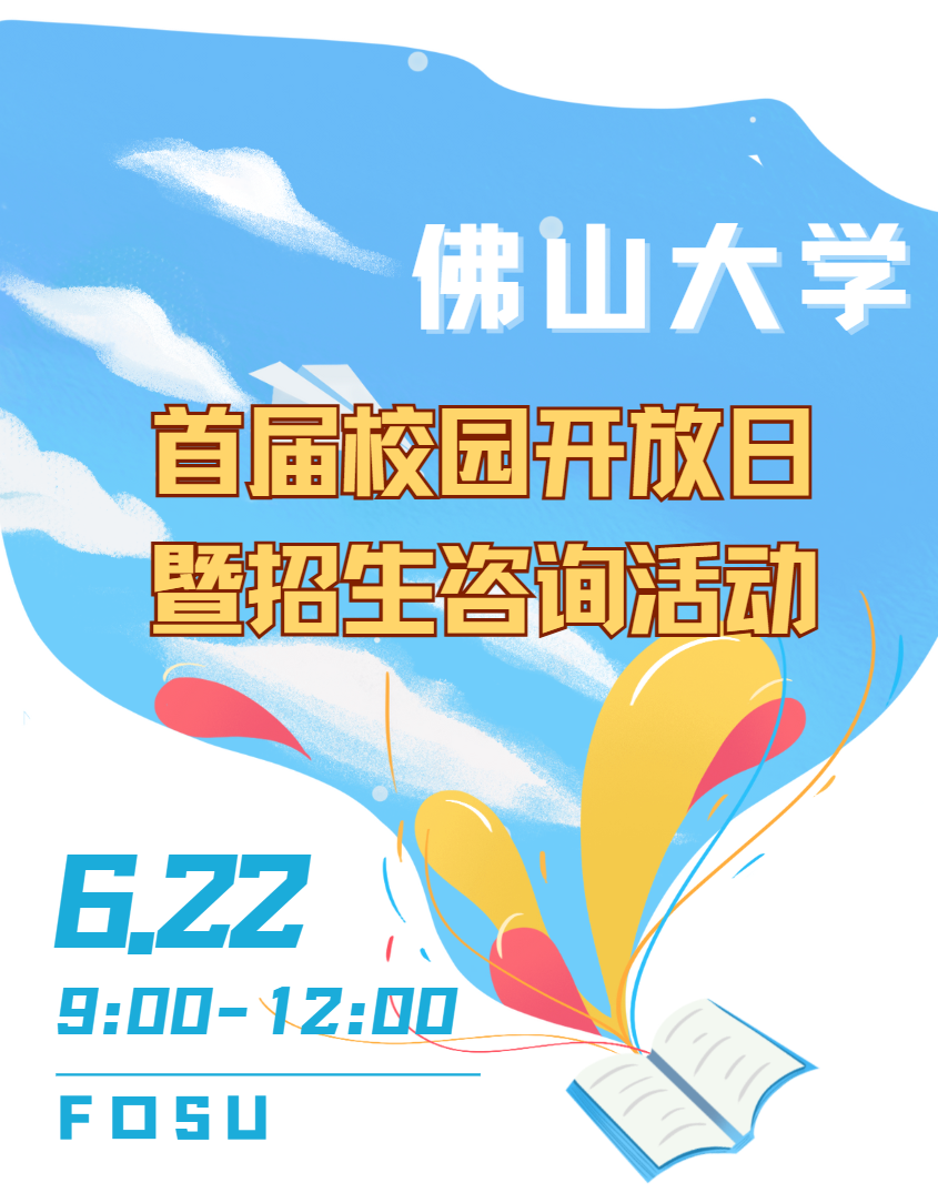 初夏微风正好,佛山大学2025年校园开放日暨本科生招生咨询活动要开始啦,想知道专业情况?想体验佛大生活?佛山大学诚邀您共同走进全国文明校园,参加“探索佛大·启梦未来”首届校园开放日暨本科生招生咨询活动!沉浸式体验魅力佛大,一站式解锁报考秘籍!