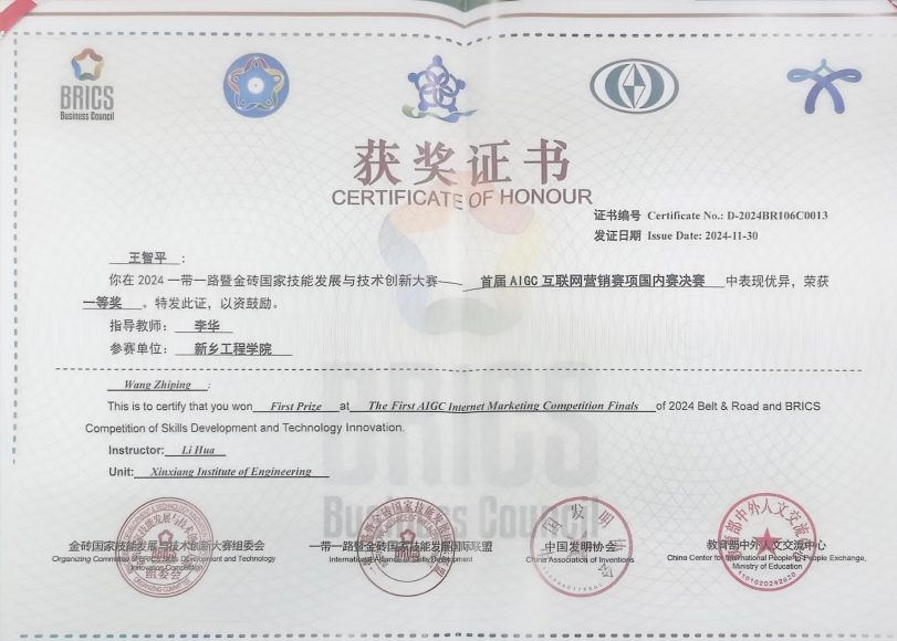 学院重视大学生创新能力培养,学生先后在全国大学生挑战杯、蓝桥杯、全国高校数智化商业决策创新大赛、河南省创业大赛、全国大学生英语竞赛、全国大学生人力资源管理知识技能竞赛(精创教育杯)、大学生物流仿真竞赛、全国大学生“新道杯”沙盘模拟经营大赛等国家级、省级竞赛中获得省级及以上奖励100余项。