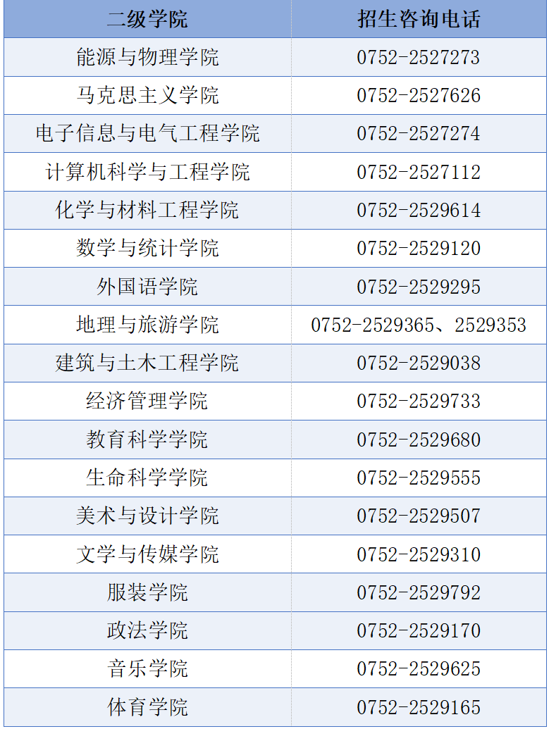 各二级学院咨询电话