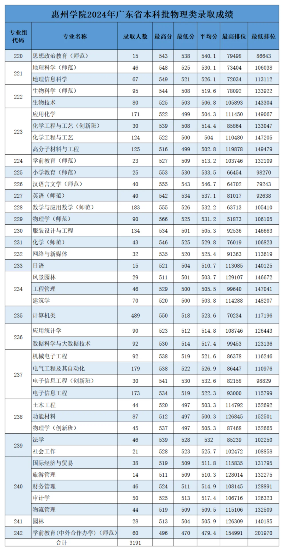 2024年广东省录取分数及排位