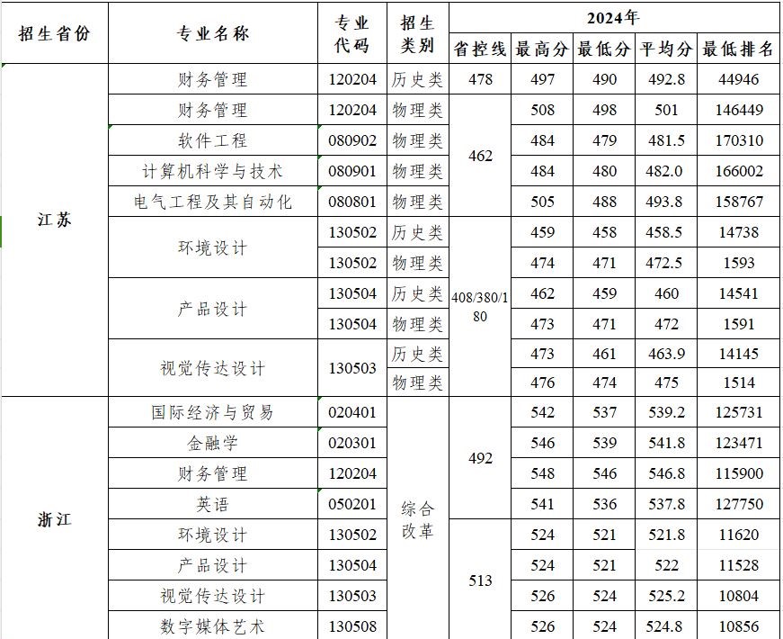 2024年外省各专业录取分数线及最低录取排名