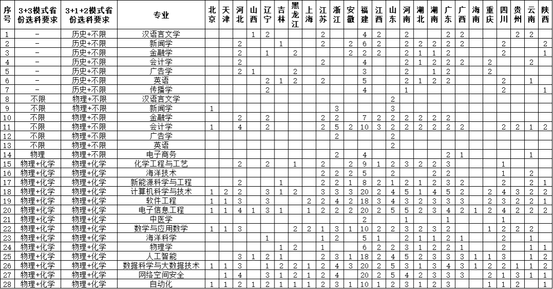 厦门大学马来西亚分校2025年分省招生计划如下: