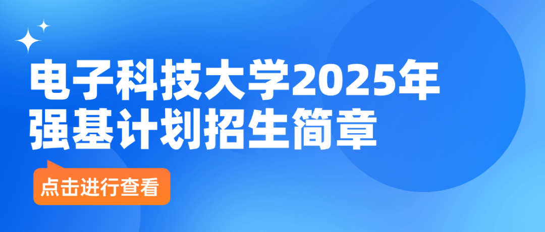 2025年,电子科技大学强基计划再度启航!作为国家基础学科拔尖人才培养的重要平台,强基计划选拔在基础学科领域具有突出才能和发展潜力的青年学生,通过系统化、专业化的培养模式,为国家科技创新和关键领域发展储备高素质后备人才。