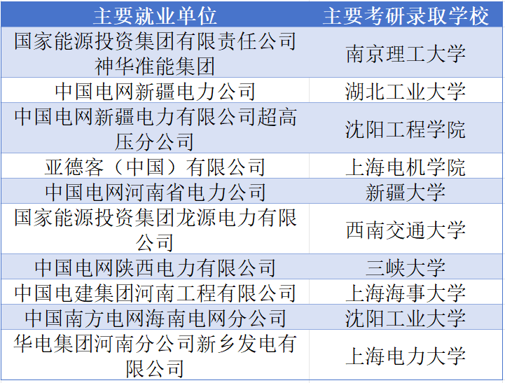 电气工程及其自动化专业主要就业单位和考研录取学校