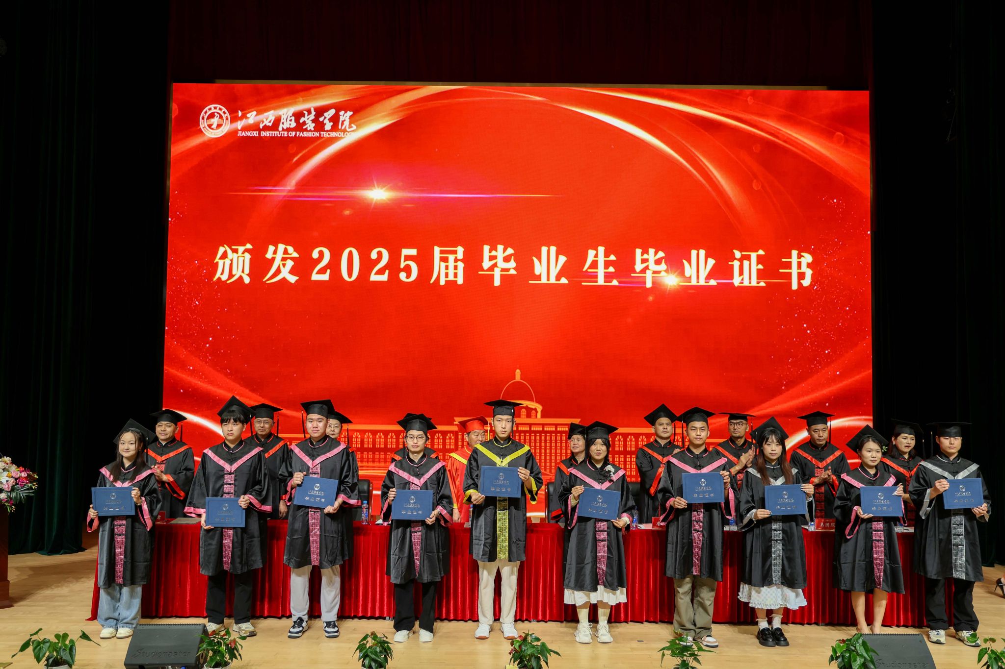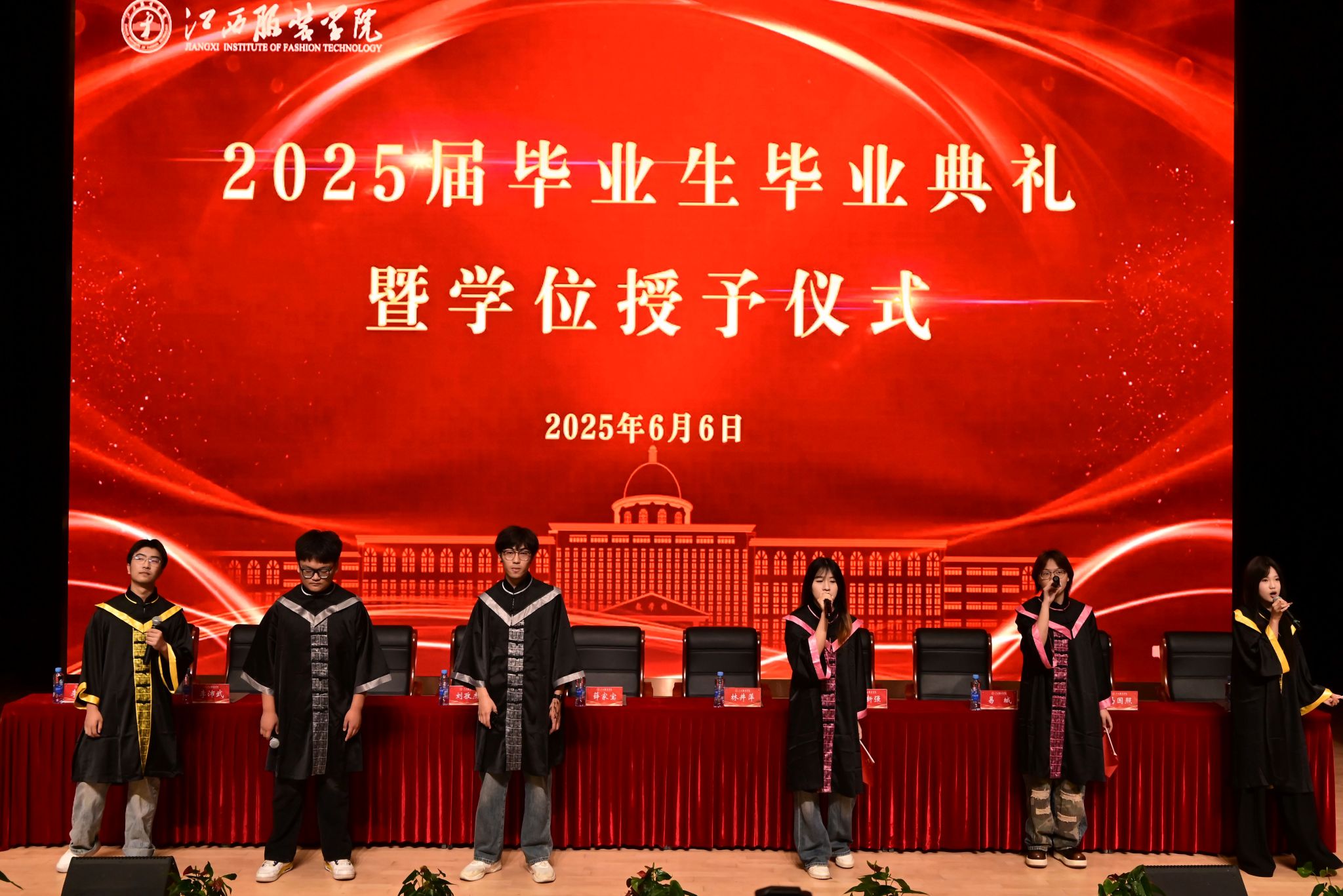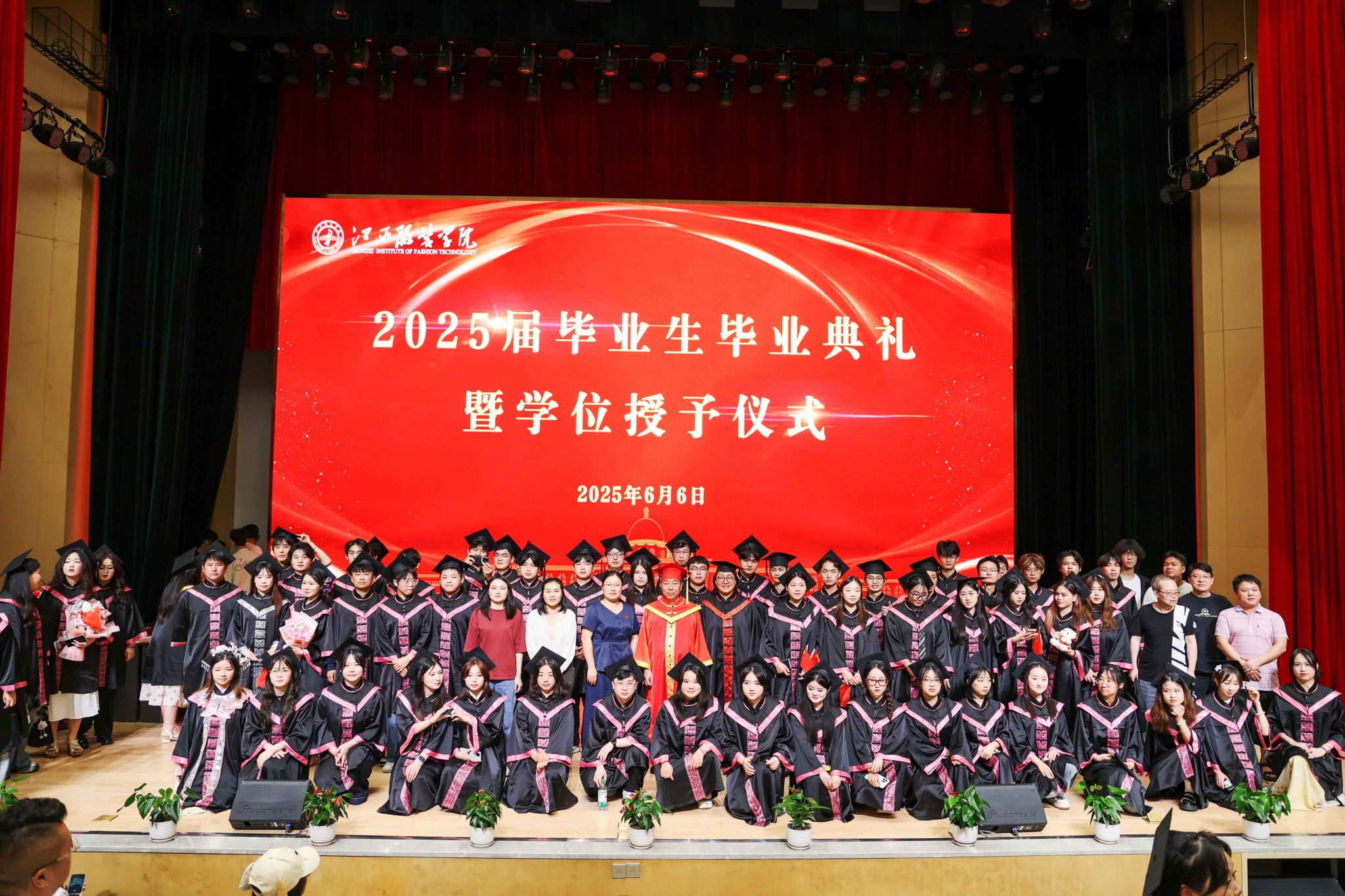 新闻中心讯(文/万强 图/钟宏鹏 申宇晨)栀子花开,骊歌唱响。6月6日上午,江西服装学院在体育馆报告厅举行2025届毕业生毕业典礼暨学位授予仪式。学校理事长涂燕萍,党委书记林井萍,校学位评定委员会主任、校长薛家宝和学位评定委员会全体成员出席典礼,各二级学院院长、书记、毕业班辅导员、班主任、教师代表、校友代表、家长代表与2025届毕业生代表齐聚一堂,共同见证这场奔赴星辰大海的青春启航。毕业典礼由党委副书记、副校长李宝君主持。