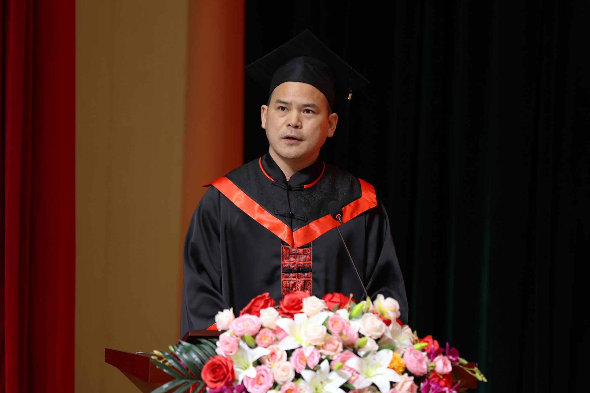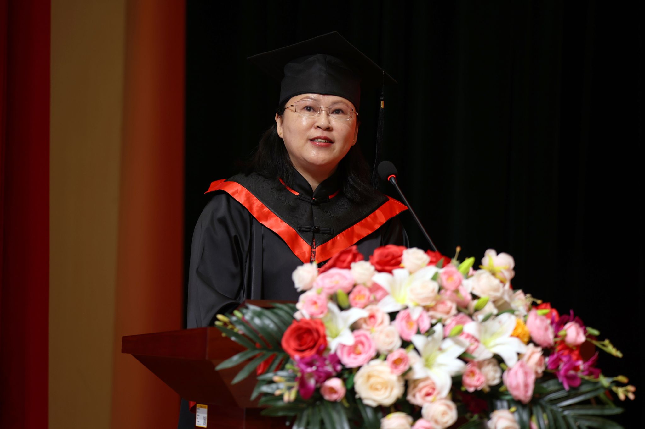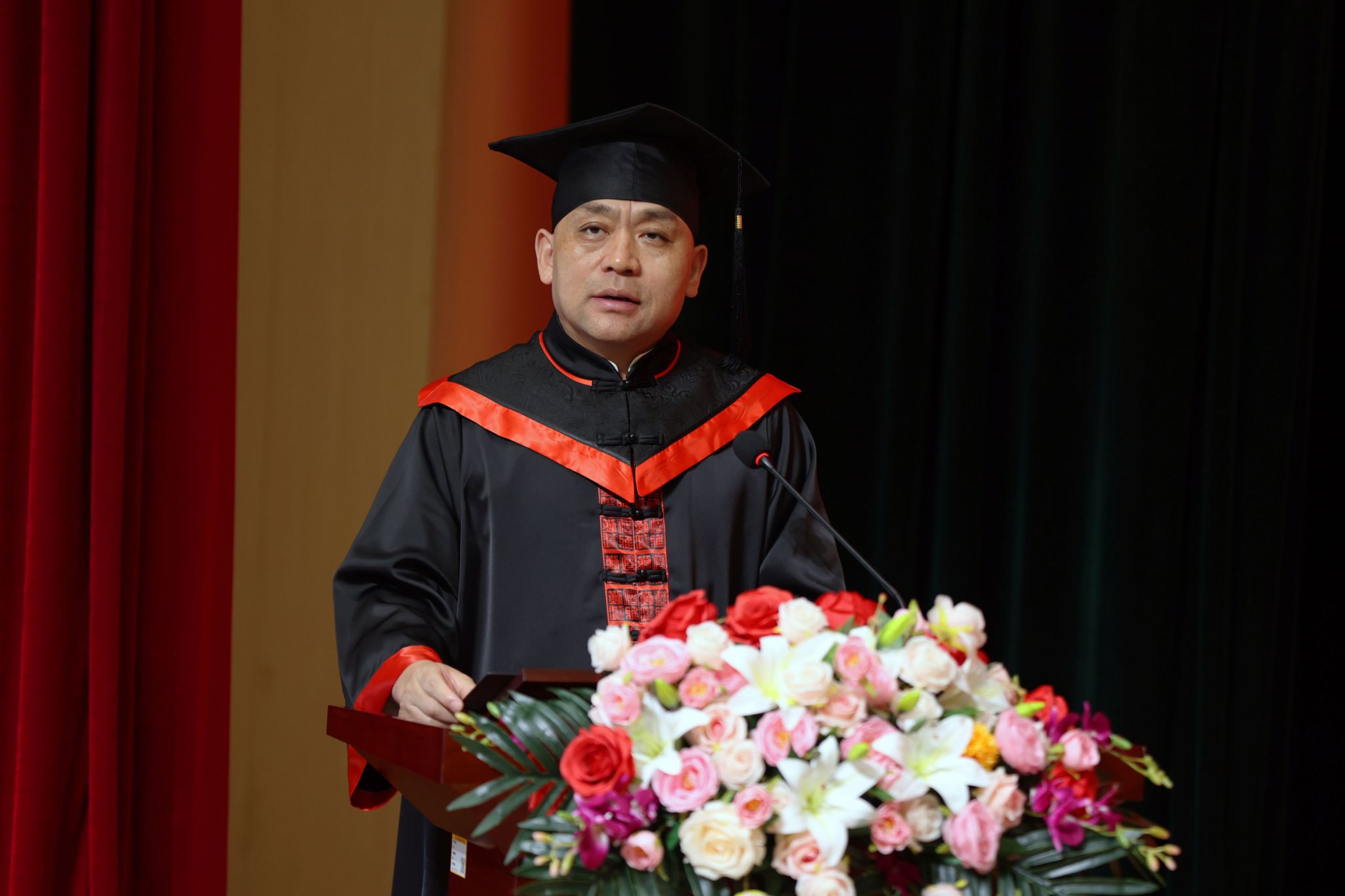 毕业典礼在雄壮激昂的国歌声中拉开帷幕。