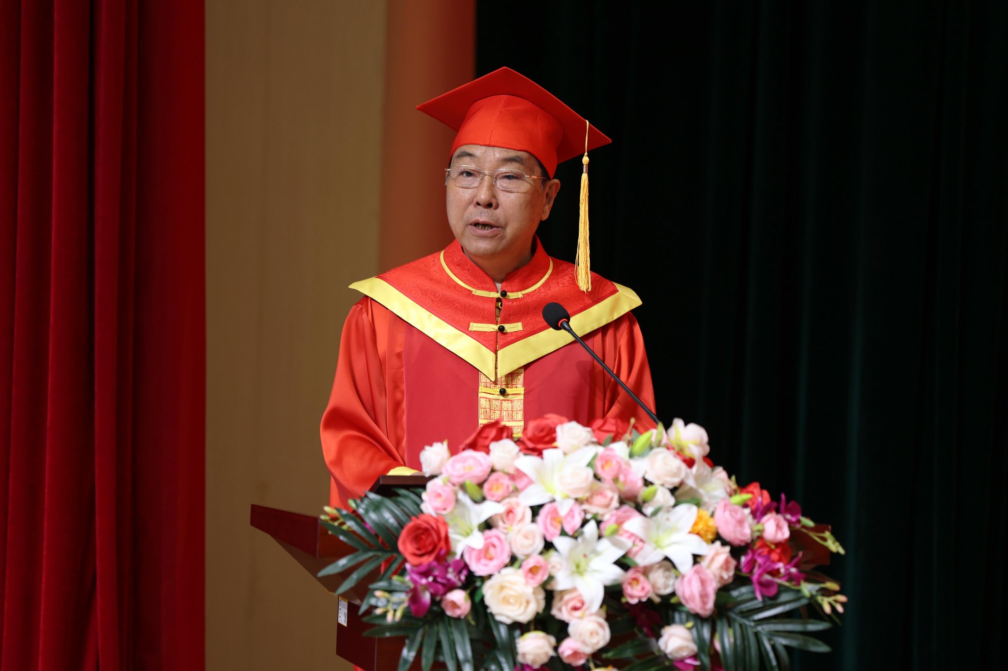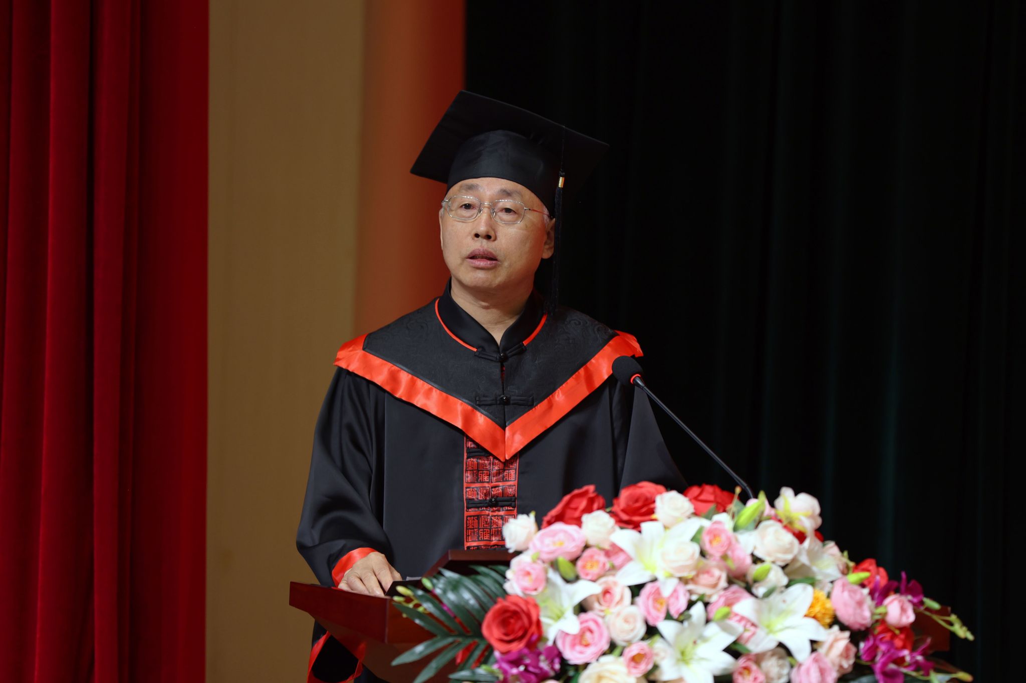 薛家宝对全体毕业生提出殷切期望。希望同学们志存高远,做胸怀祖国的追梦者。积极投身民族复兴伟业,将“小我”融入“大我”,与祖国的发展同频共振,在行业转型发展中奋发有为,在乡村振兴一线绽放芳华,在祖国的万里长空放飞青春梦想。希望同学们明德修身,做知行合一的笃行者。潜心修身立德,磨炼意志品质,努力创建有利于国家、有利于民族、有利于人民的功业,坚守道德底线、守望心灵家园,做到内心豁达而信仰坚定,内外兼修而睿智持重,真正成长为社会的中坚、国家的栋梁。希望同学们勤学善思,做勇立潮头的弄潮儿。将学习作为一种精神追求和生活方式,永葆“问渠那得清如许,为有源头活水来”的求知欲,不断提升知识底蕴,在跨界融合中开辟新赛道,在广阔无垠的社会大舞台上展示风采、实现人生价值。希望同学们匠心独运,做臻于至善的传承者。永远秉持“如切如磋,如琢如磨”的匠心,明德弘毅、崇艺尚美、敬业奉献、追求卓越。与时代共舞,用青春的智慧和汗水,浇灌出属于你们的万紫千红,让传统工艺与现代科技碰撞出时代华光。