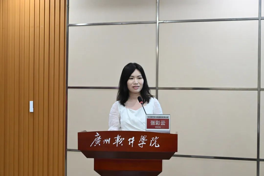 360数字安全集团教育事业部销售总监张彩云重点介绍了集团对产业学院的赋能计划。她表示,360集团将充分发挥企业在科技、网络安全领域的领先技术优势和行业地位,主要投入包括但不限于教学资源、教学平台、教学师资、研发资源、校企协同创新平台、师资培训等,企业将与校方深度协同,共同探索产教融合背景下网络安全人才培养的创新模式与特色路径。