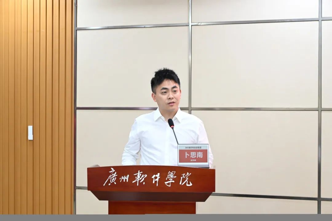 “广软-360网络安全产业学院是360在全国范围内唯一一个也是国内首家与民办高校合作办学的产业学院。”卜思南副总裁表示,360 数字安全集团作为国内唯一兼具数字安全与 AI 双引擎驱动的科技企业,在近 20 年的实战中积累了独特的能力体系,集体连续七年支撑国家级网络攻防实战演习。同时,我们自主研发的千亿级安全大模型 “360 智脑”,已成为国内首个原生安全大模型,为 AI 时代的网络安全防御提供了新范式。产教融合不是简单的校企合作,而是教育范式的重构,集团将充分发挥在网络安全领域的技术与资源优势助力广州软件学院应用型人才培养。他强调,360愿与广州软件学院共同探索 “产业前置化、实战常态化”、“教室即战场、教学即实战” 的人才培养模式,将企业的技术资源、行业经验转化为教学动能,推动教育与产业需求的 “零时差” 对接,与学校共同打造产学研一体化的高水平人才培养平台。